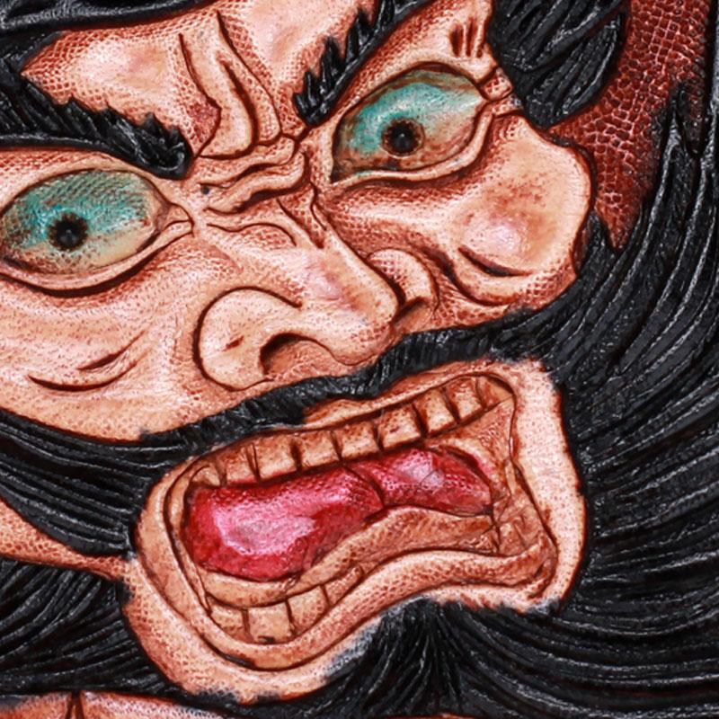 Style: Handmade Leather Mens Clutch Wallet Cool Zhong Kui Tooled Wallet Long Zipper Wallets for Men