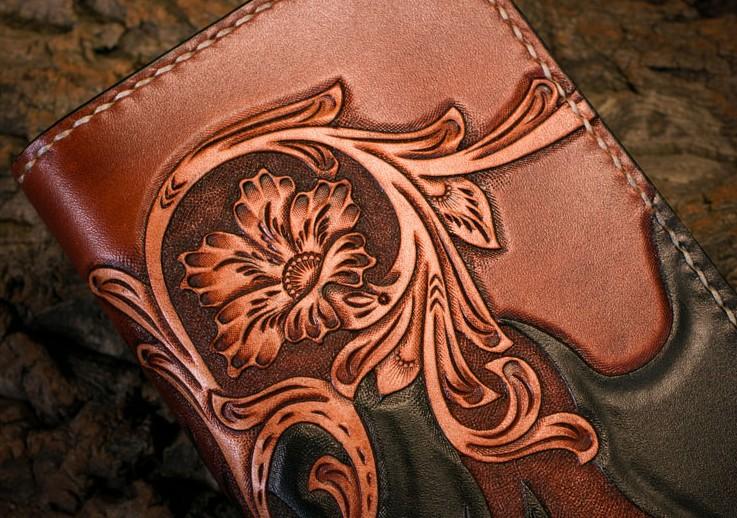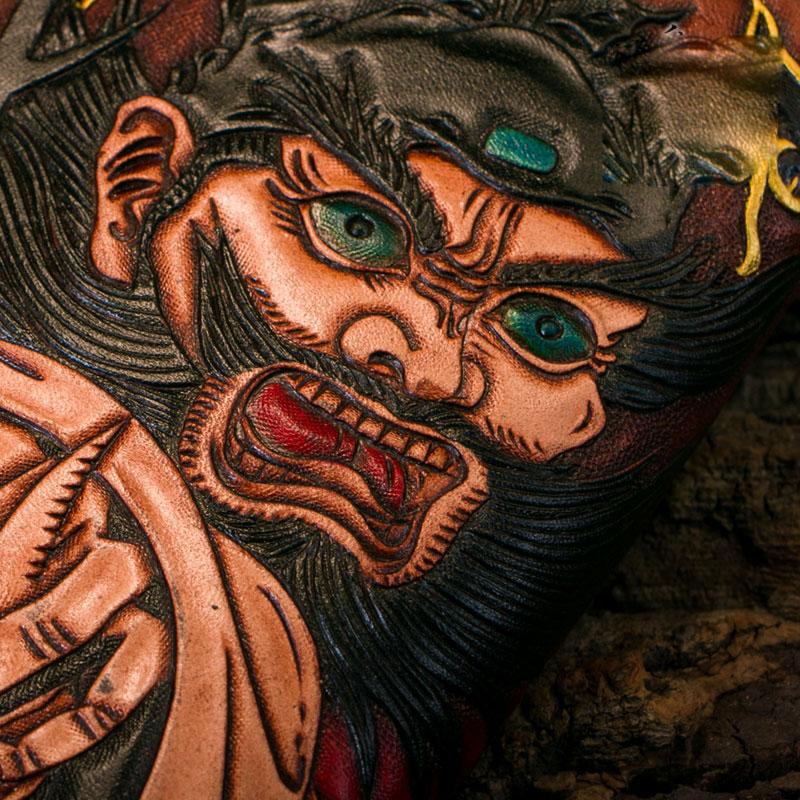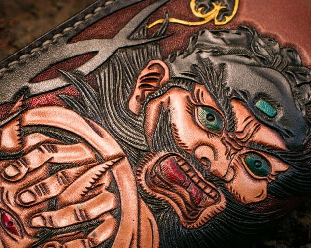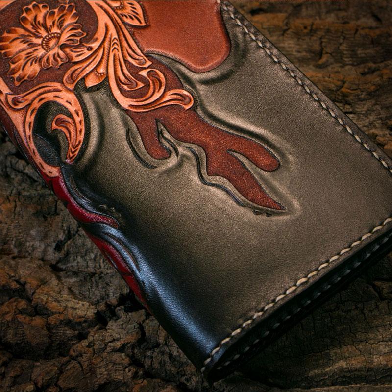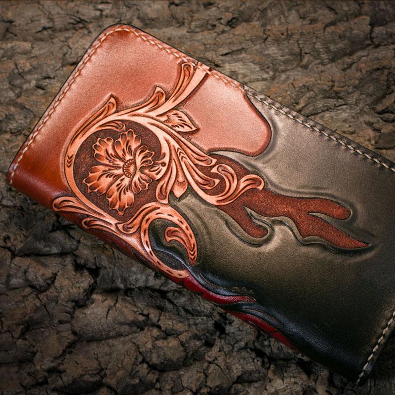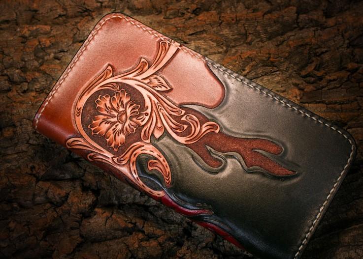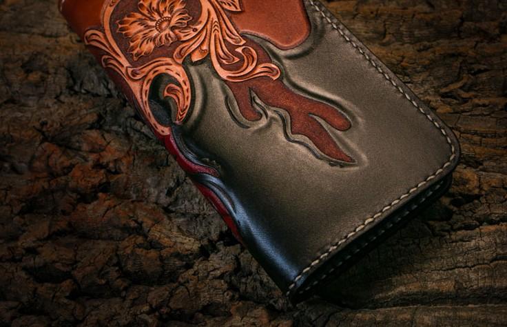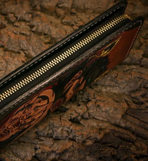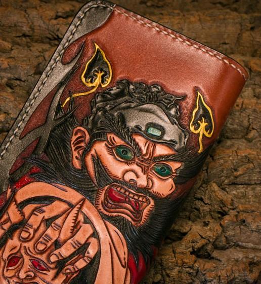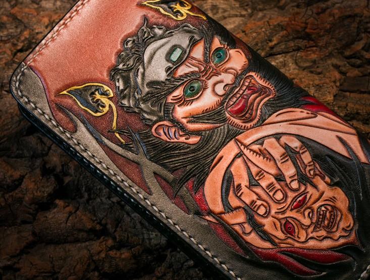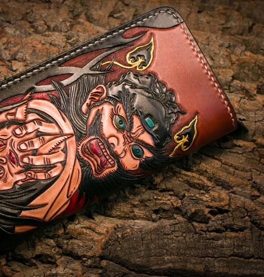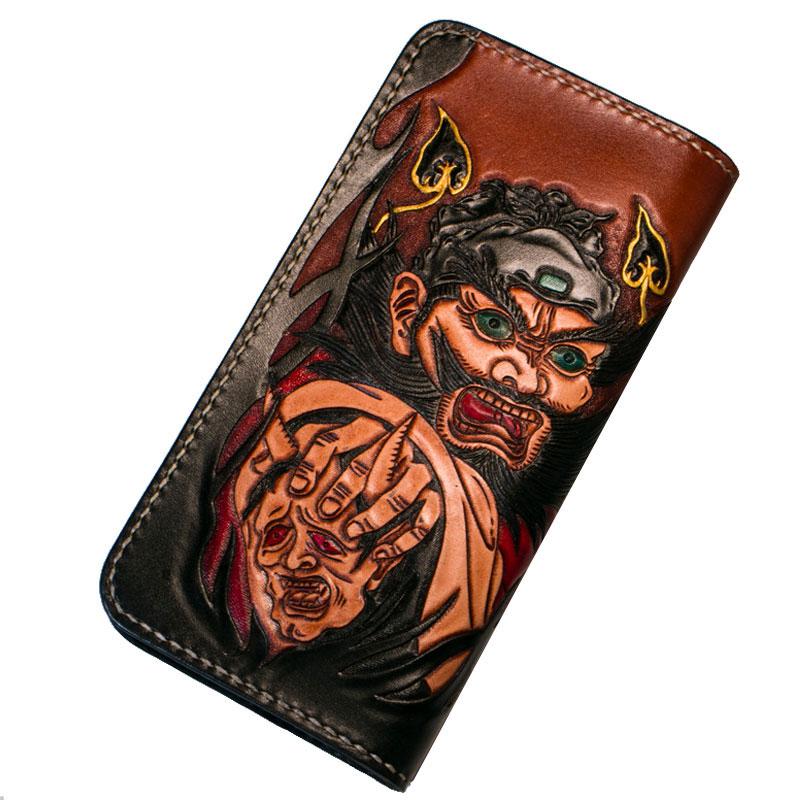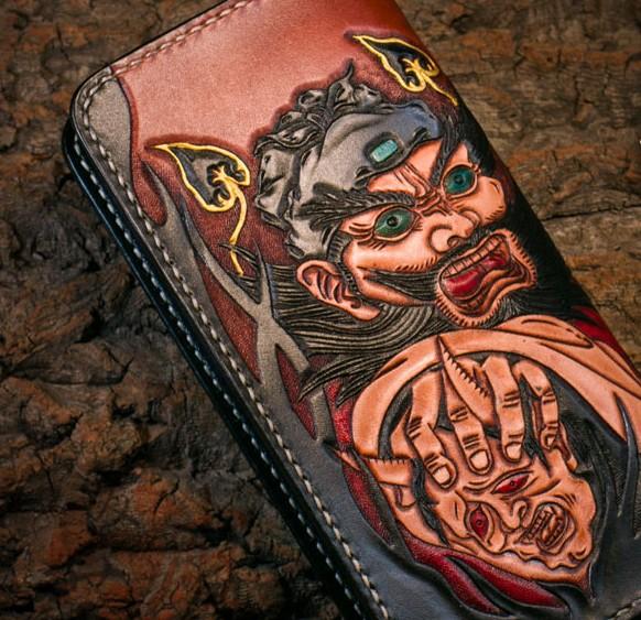 Design: Handmade Leather Mens Clutch Wallet Tooled Cool Zhong Kui Wallet Long Zipper Wallets for Men
