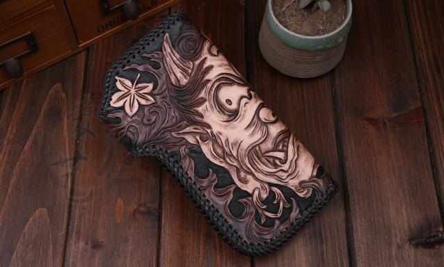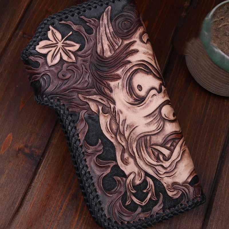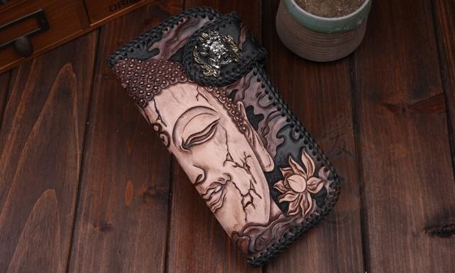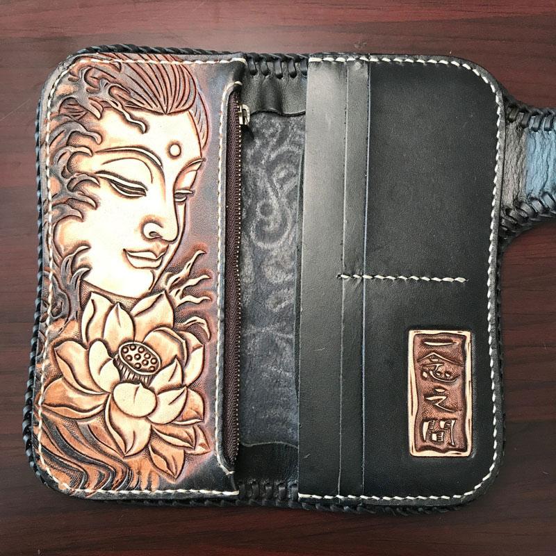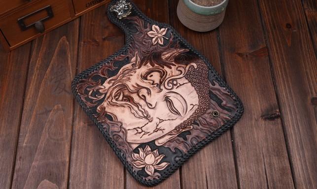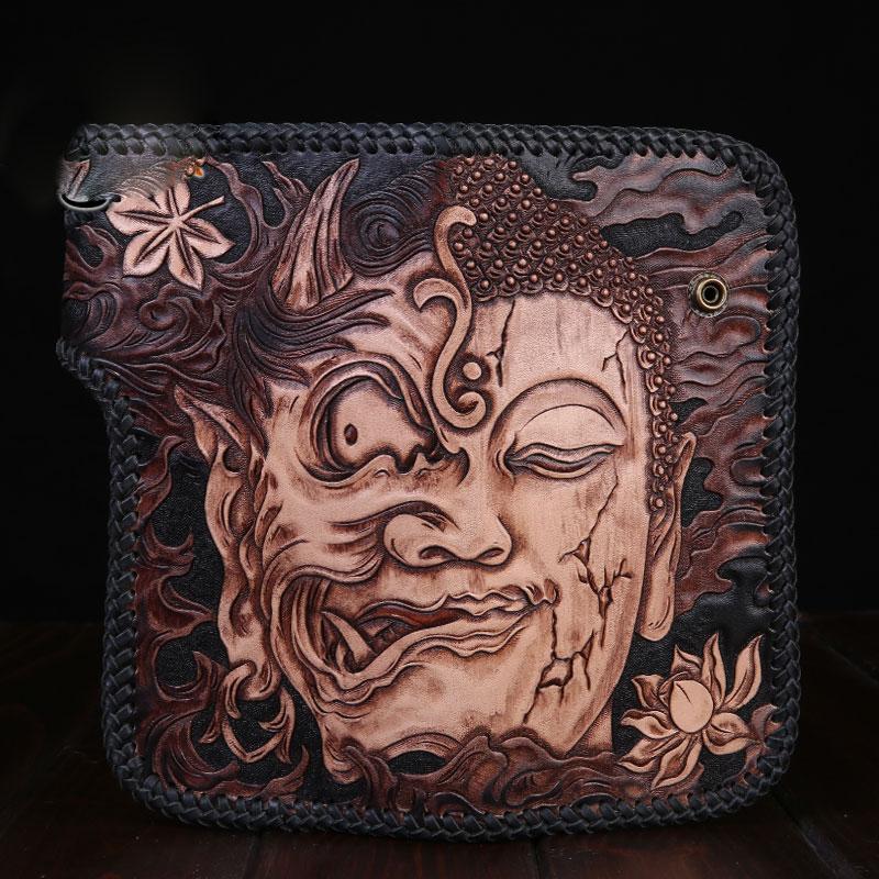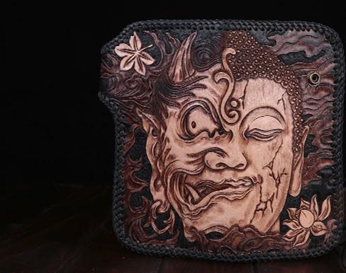 Style: Handmade Leather Mens Cool Black Buddha Chain Wallet Biker Trucker Wallet with Chain