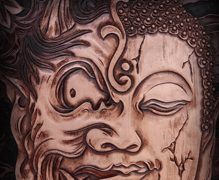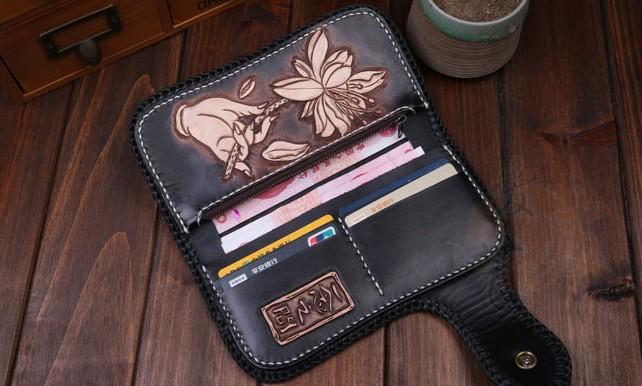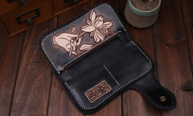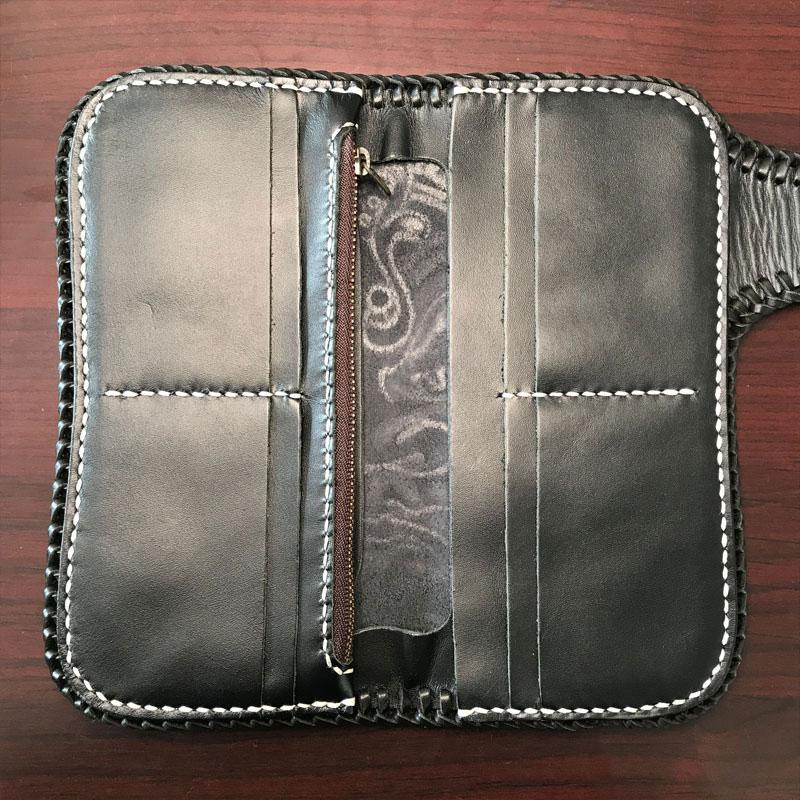 Design: Handmade Leather Mens Cool Black Buddha Chain Wallet Biker Trucker Wallet with Chain