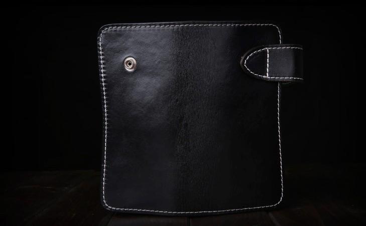Design: Handmade Leather Mens Cool Black Obsidian Chain Wallet Biker Trucker Wallet with Chain