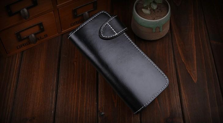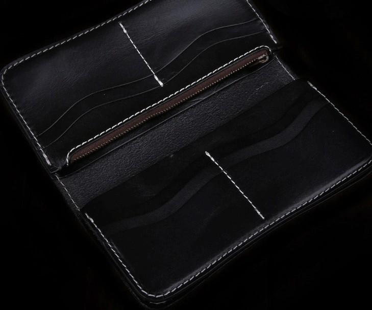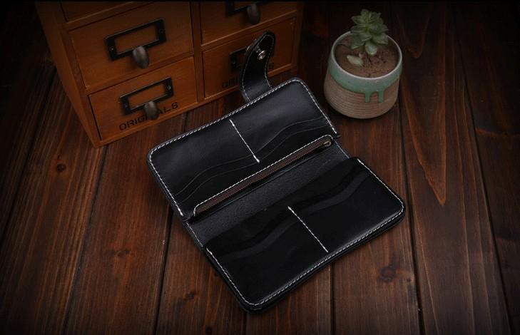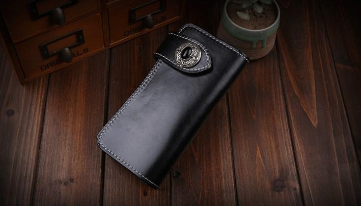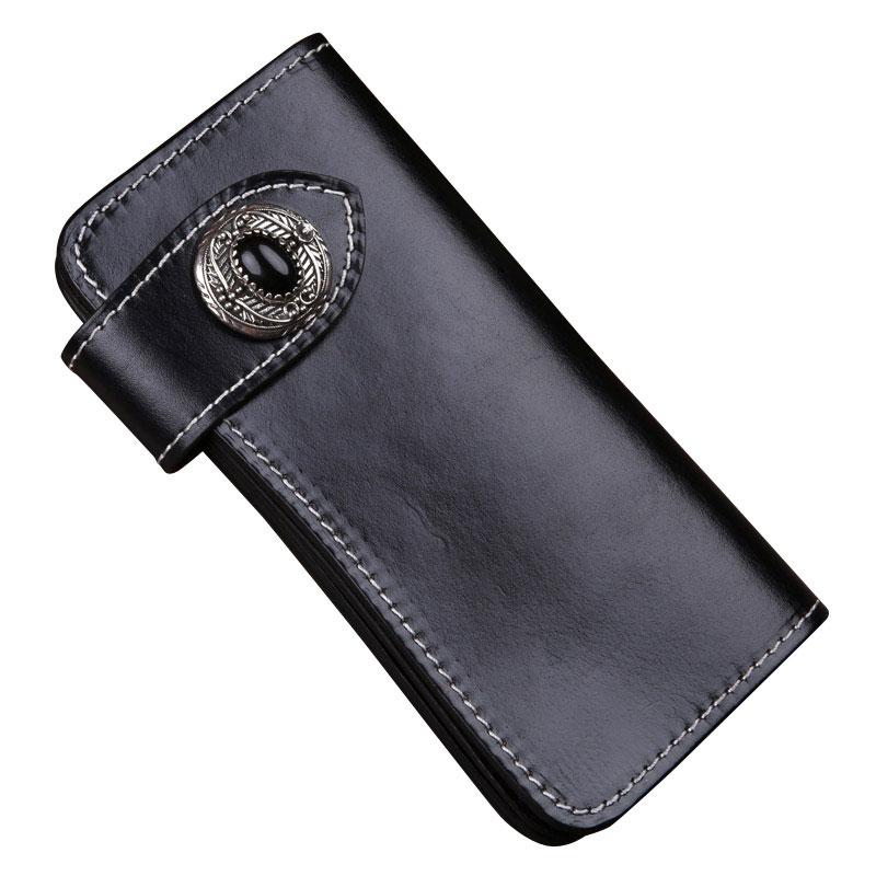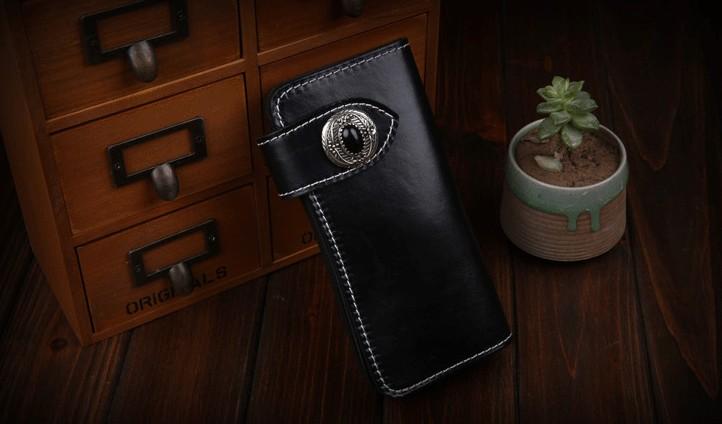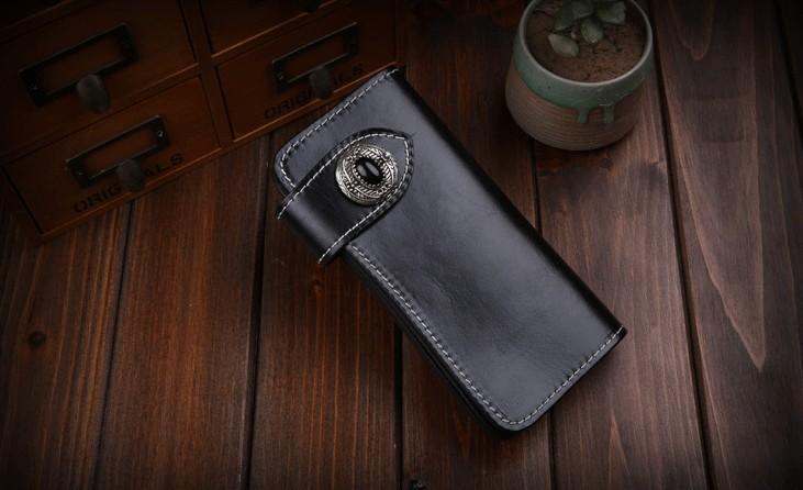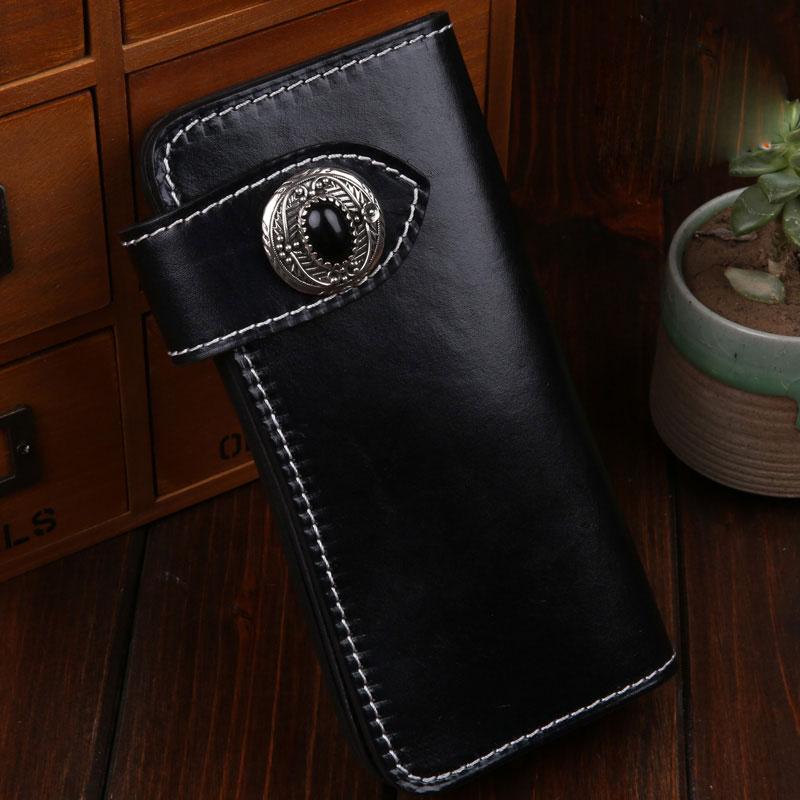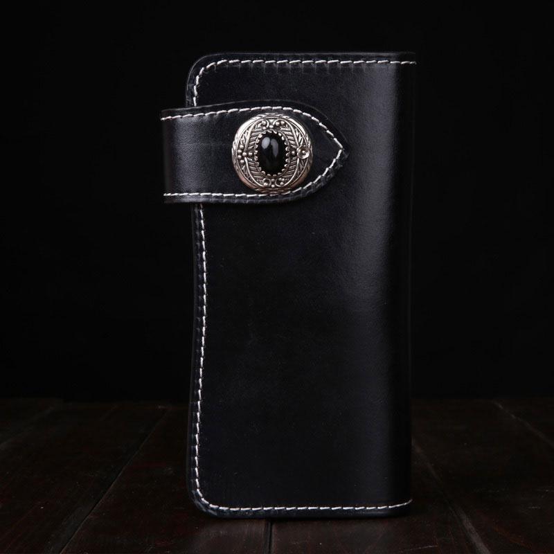 Handmade Leather Mens Cool Long Black Obsidian Chain Wallet Biker Trucker Wallet with Chain