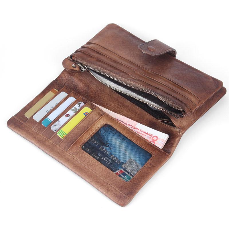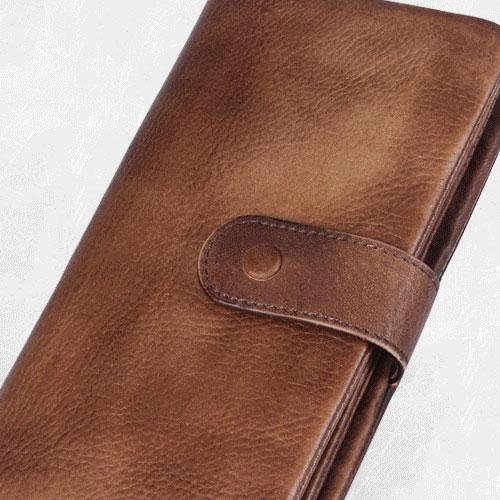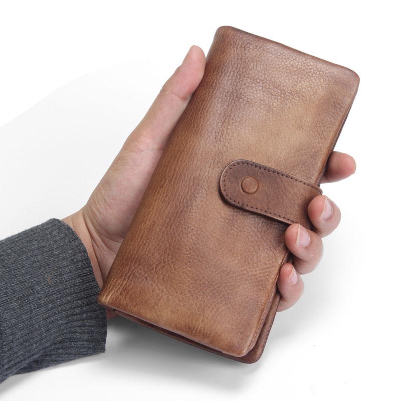 Design: Handmade Leather Mens Cool Long Leather Wallet Bifold Clutch Wallet for Men