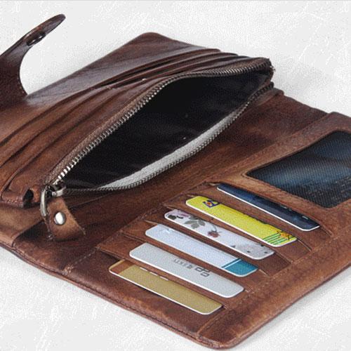 Slots:?2?full size bill slot, 12 card holders, 1 phone slot,?1 zipper slot