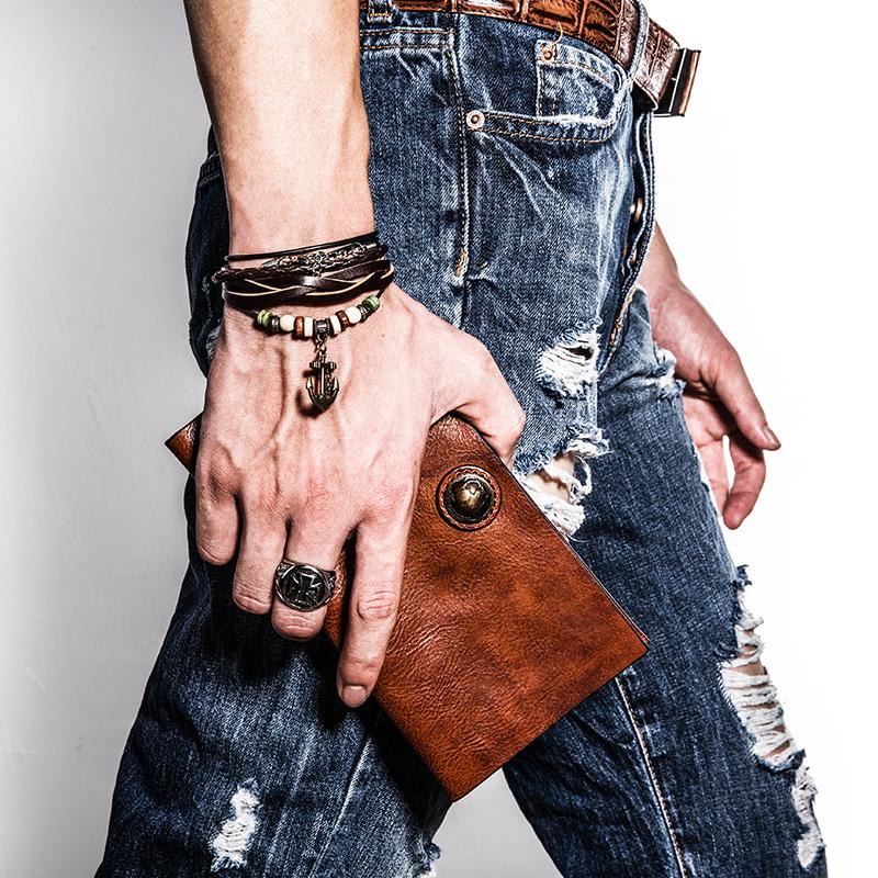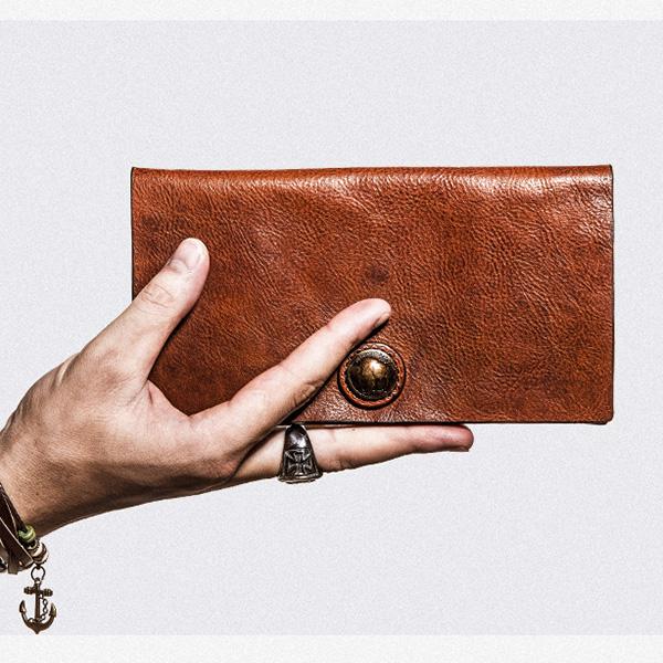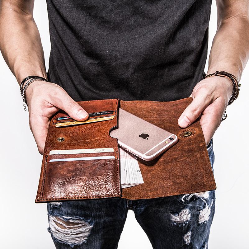 Design: Handmade Leather Mens Cool Long Leather Wallet Bifold Clutch Wallet for Men