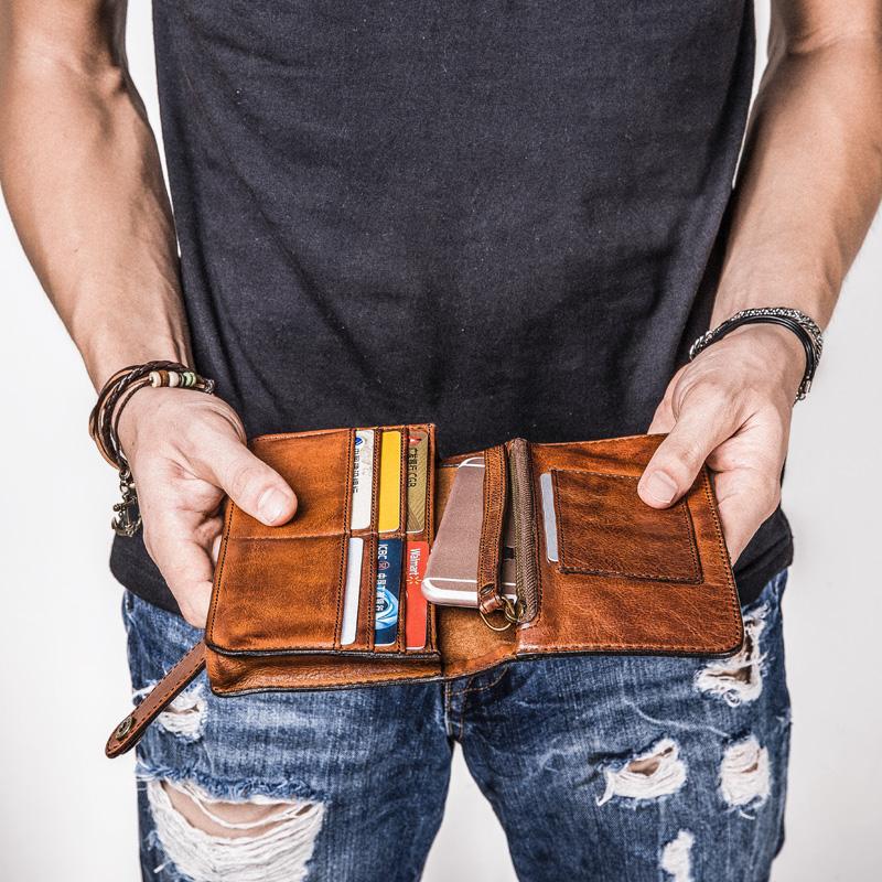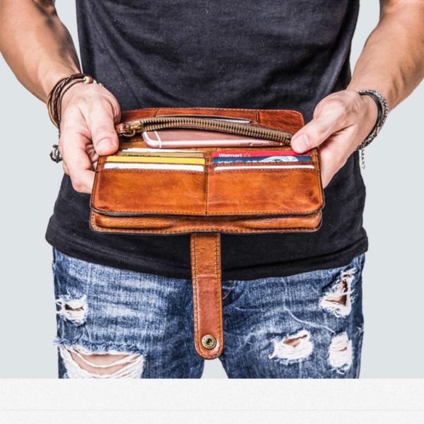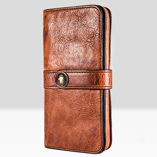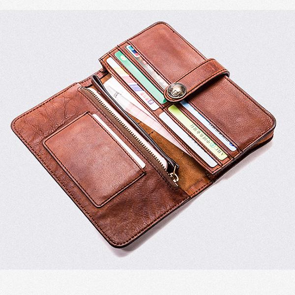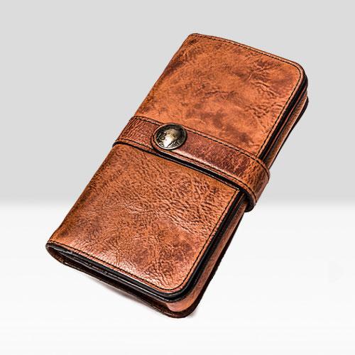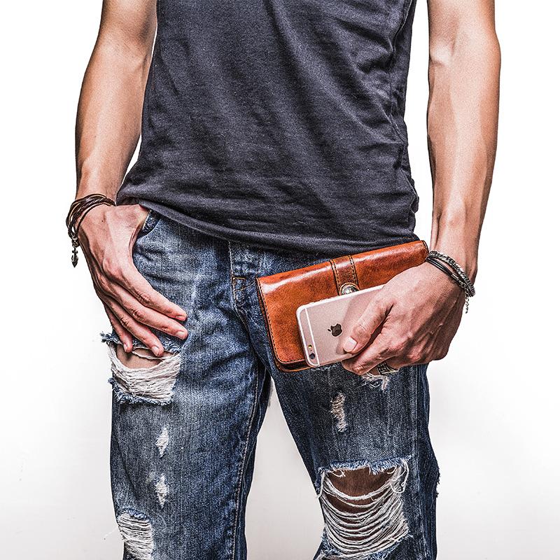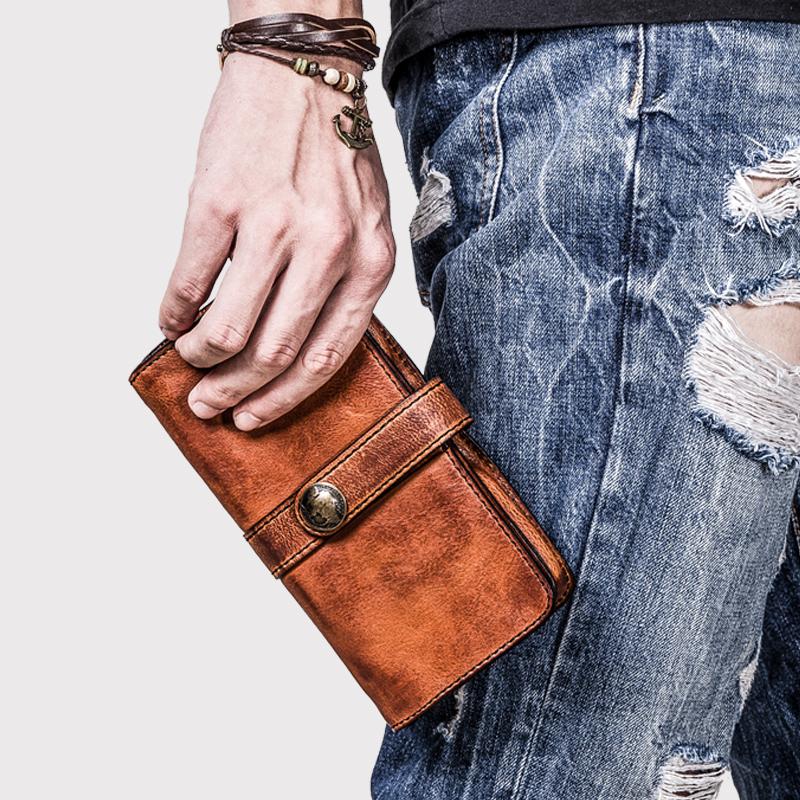 Design: Handmade Leather Mens Cool Long Leather Wallet Bifold Clutch Wallet for Men