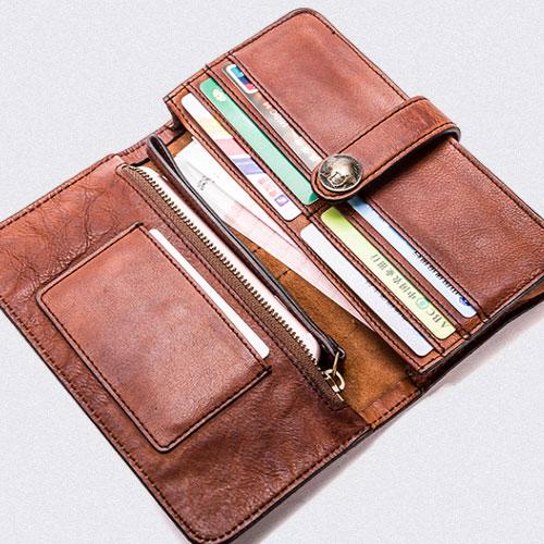 Slots:?1?full size bill slot,?7 card holders, 1 phone slot,?1 zipper slot
