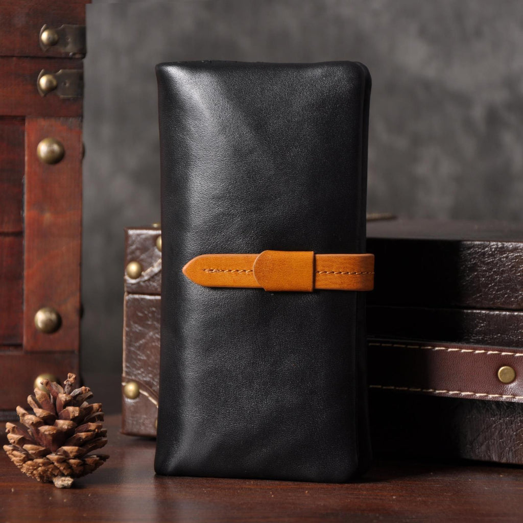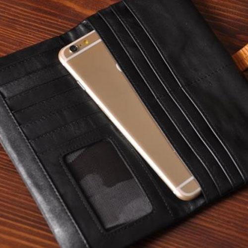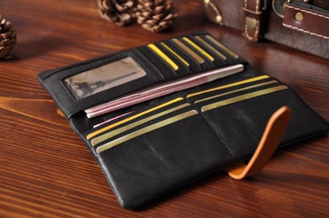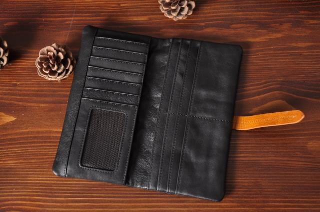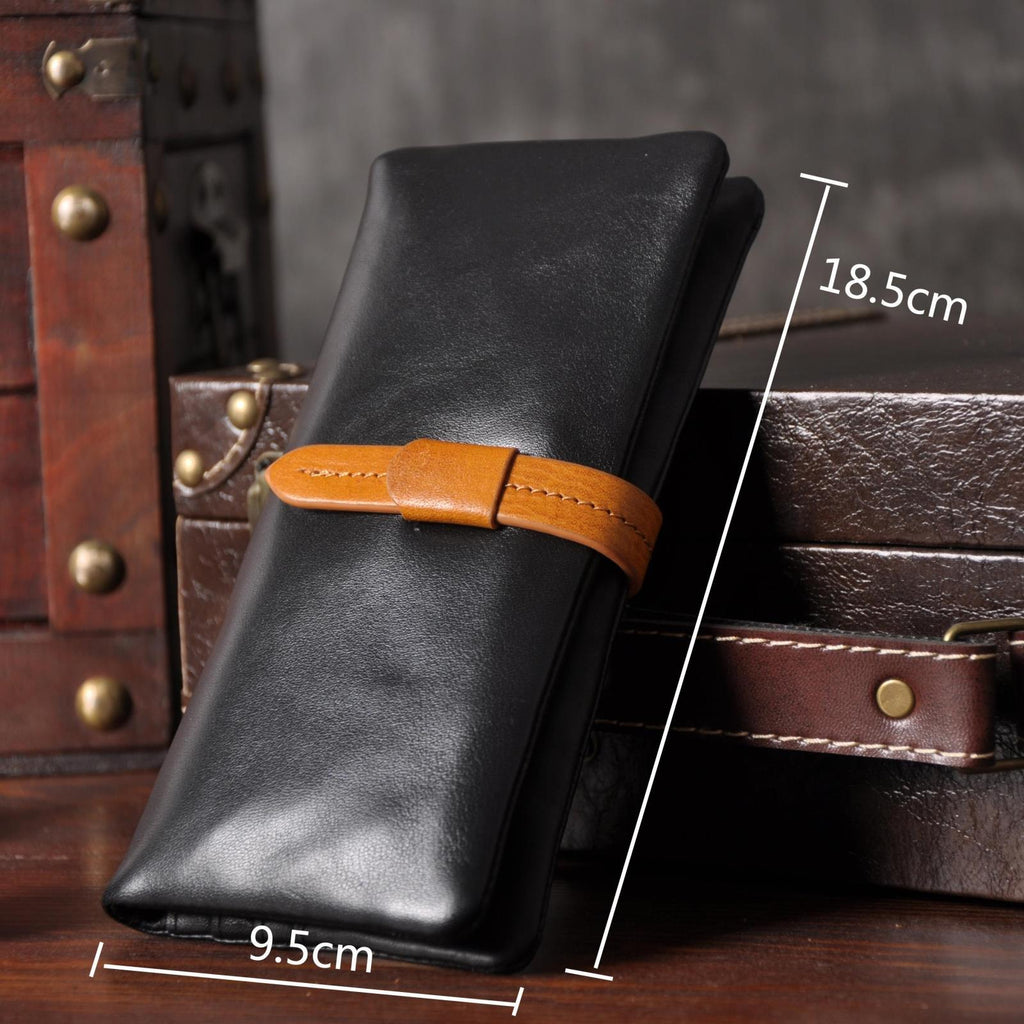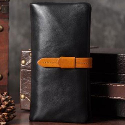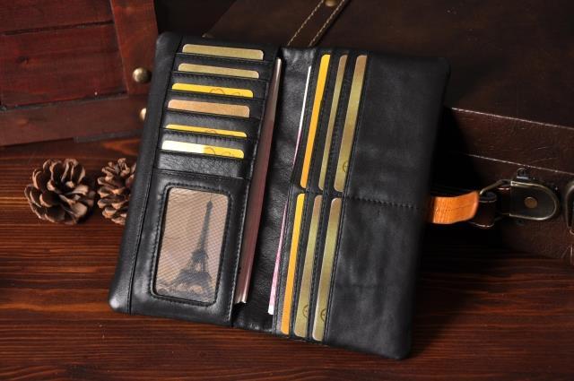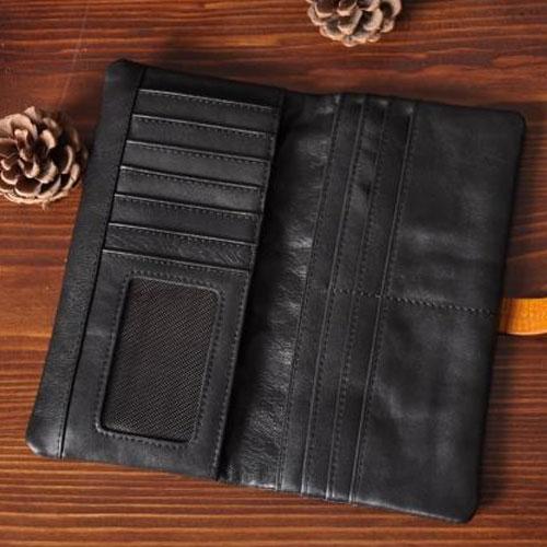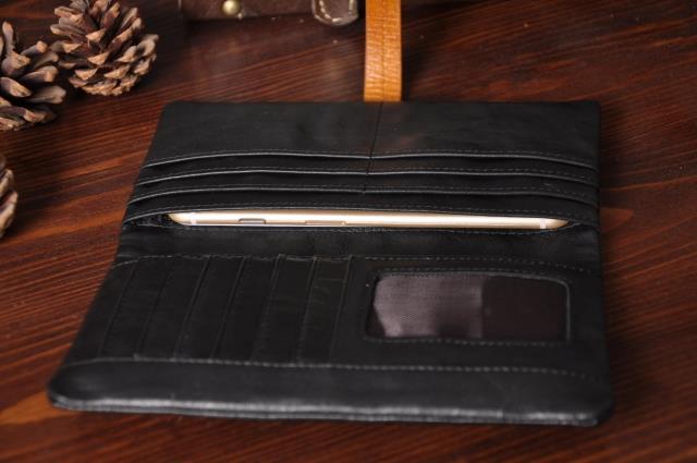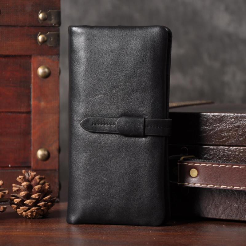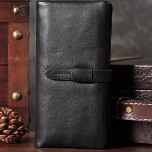Design: Handmade Leather Mens Cool Long Leather Wallet Bifold Clutch Wallet for Men