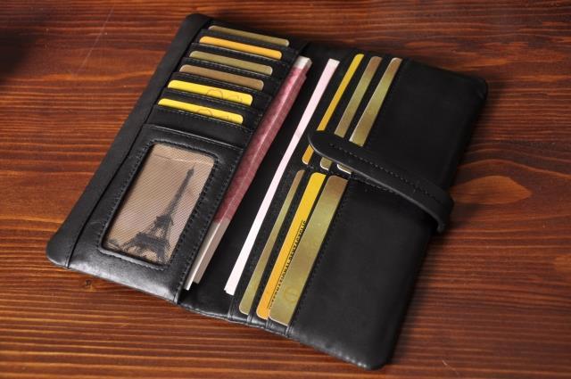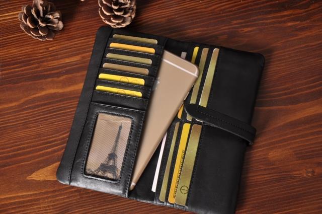 Slots:?2?full size bill slots,?11 card holders, 1 photo slot,?1 zipper slot
