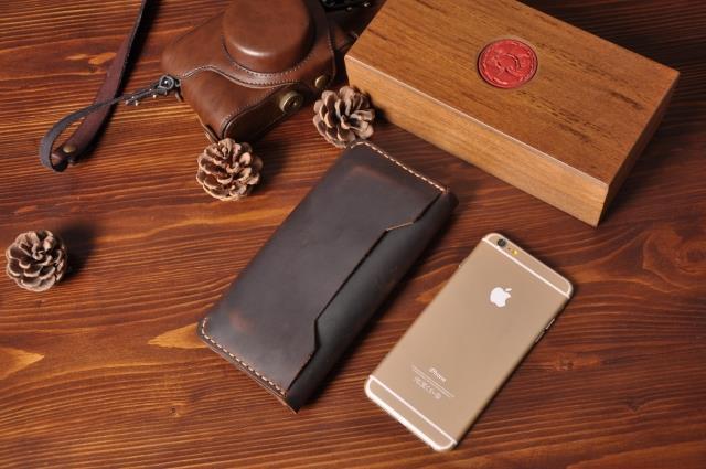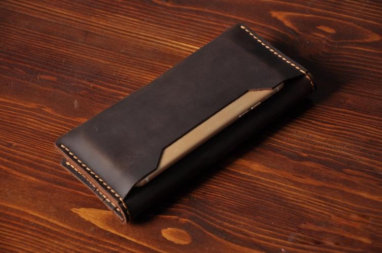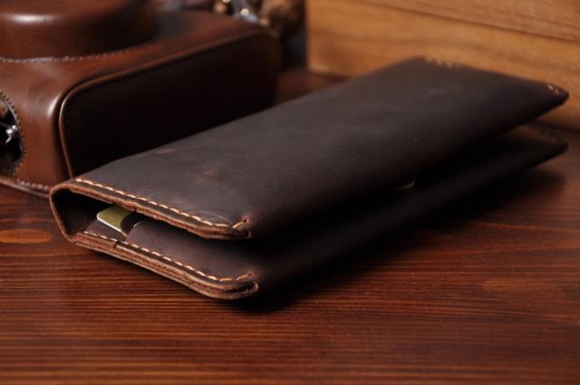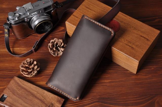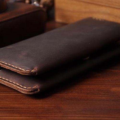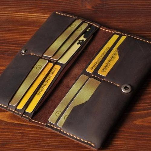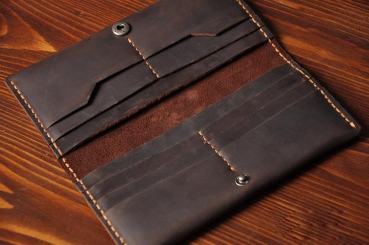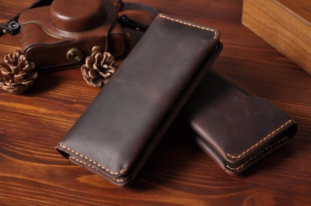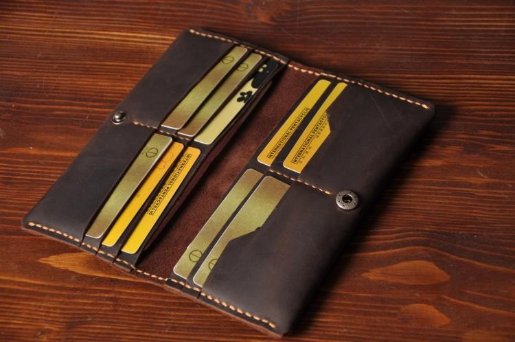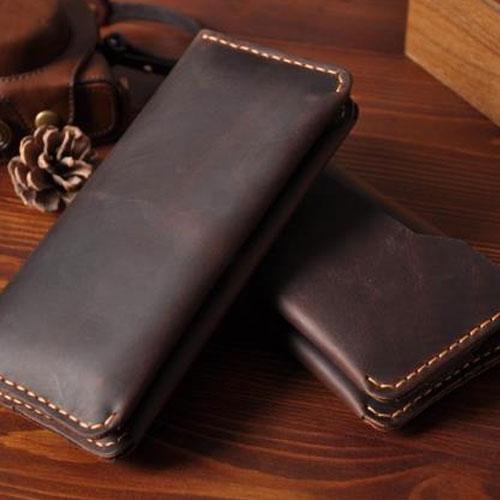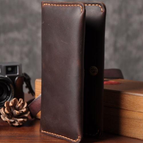 Design: Handmade Leather Mens Cool Long Leather Wallet Bifold Clutch Wallet for Men