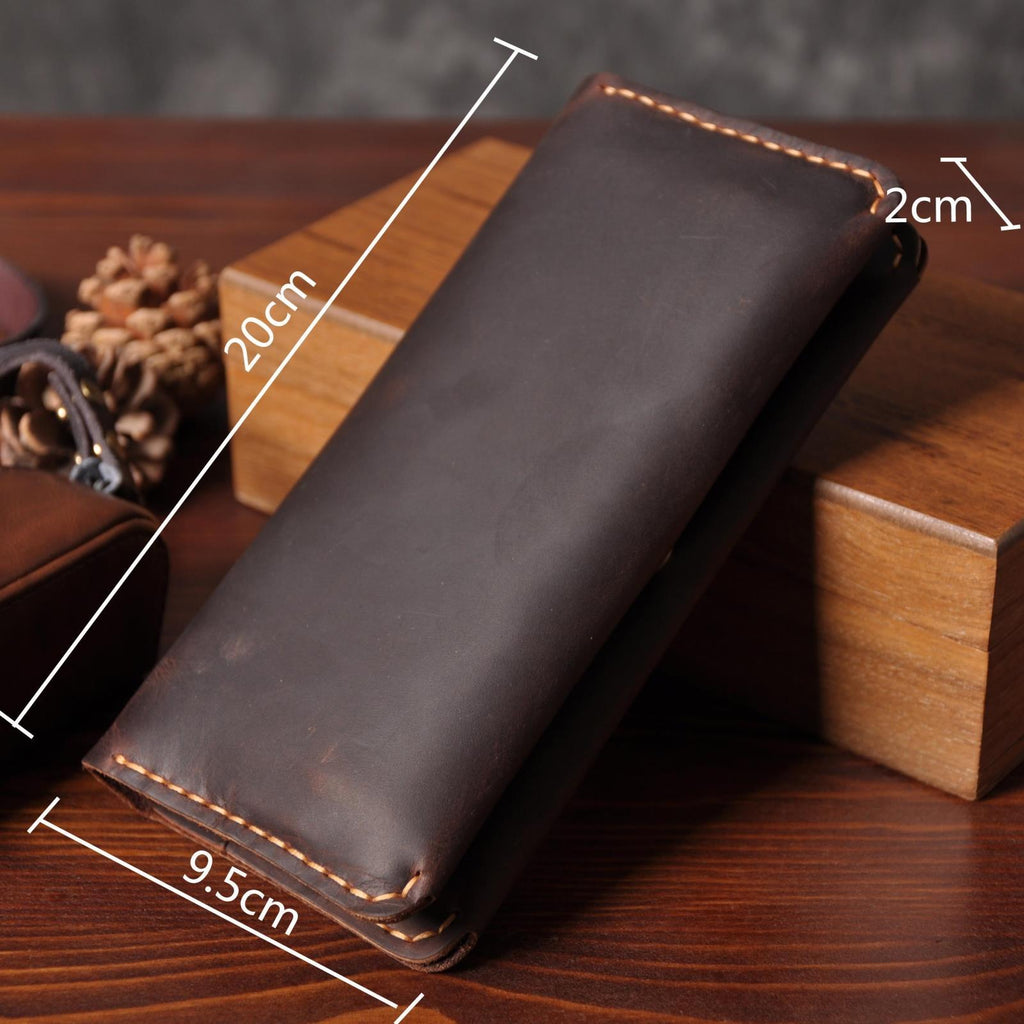 Style: Handmade Leather Mens Cool Long Leather Wallet Bifold Clutch Wallet for Men
