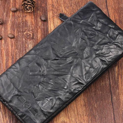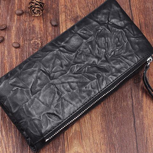 Design: Handmade Leather Mens Cool Long Leather Wallet Zipper Clutch Wallet for Men