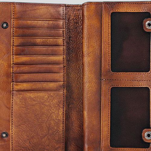 Slots:?1?full size bill slots,?12?card holders,? 2? photo slot,?1 zipper slot