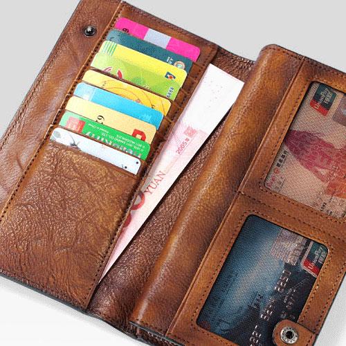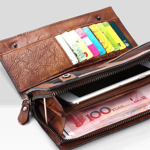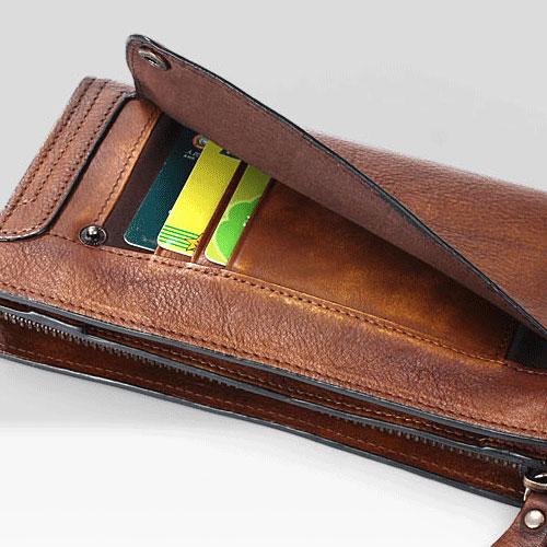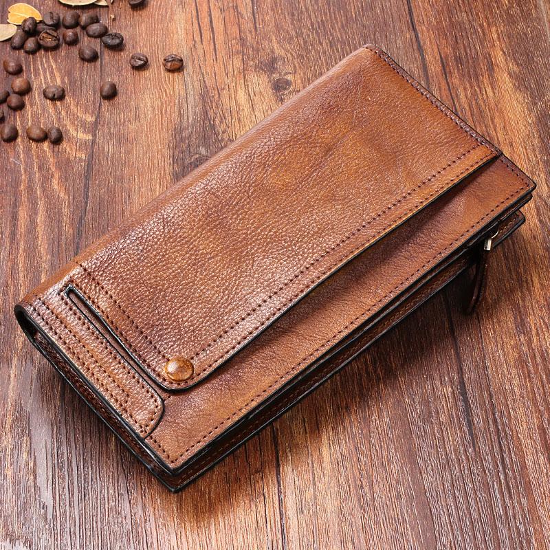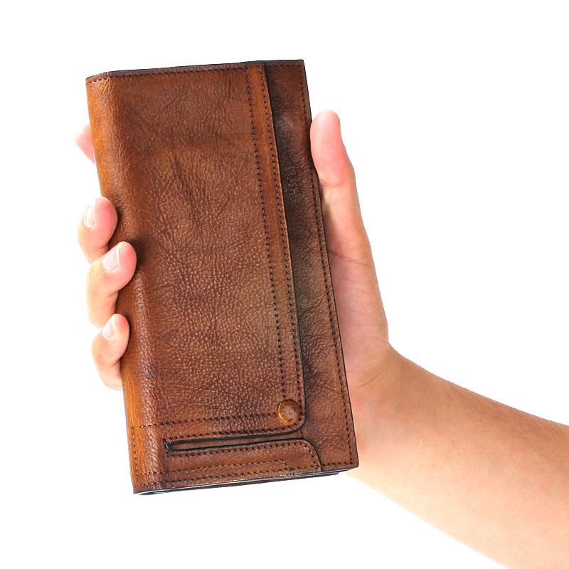 Design: Handmade Leather Mens Cool Long Leather Wallet Bifold Clutch Wallet for Men