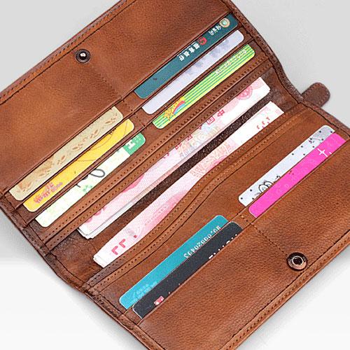 Slots:?2?full size bill slots,?16 card holders,? 1?change slot,?1 zipper slot