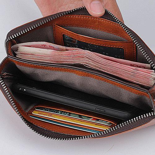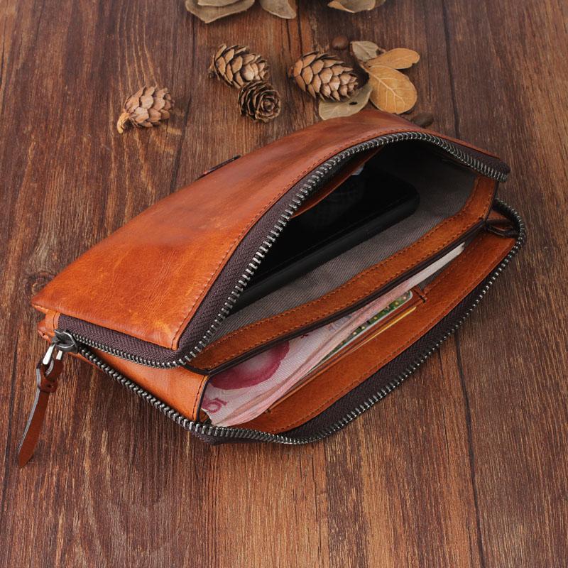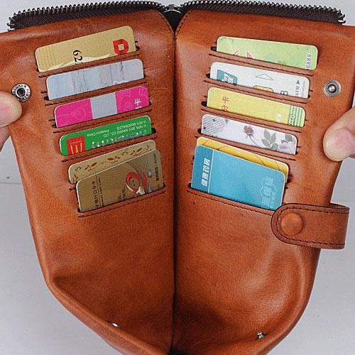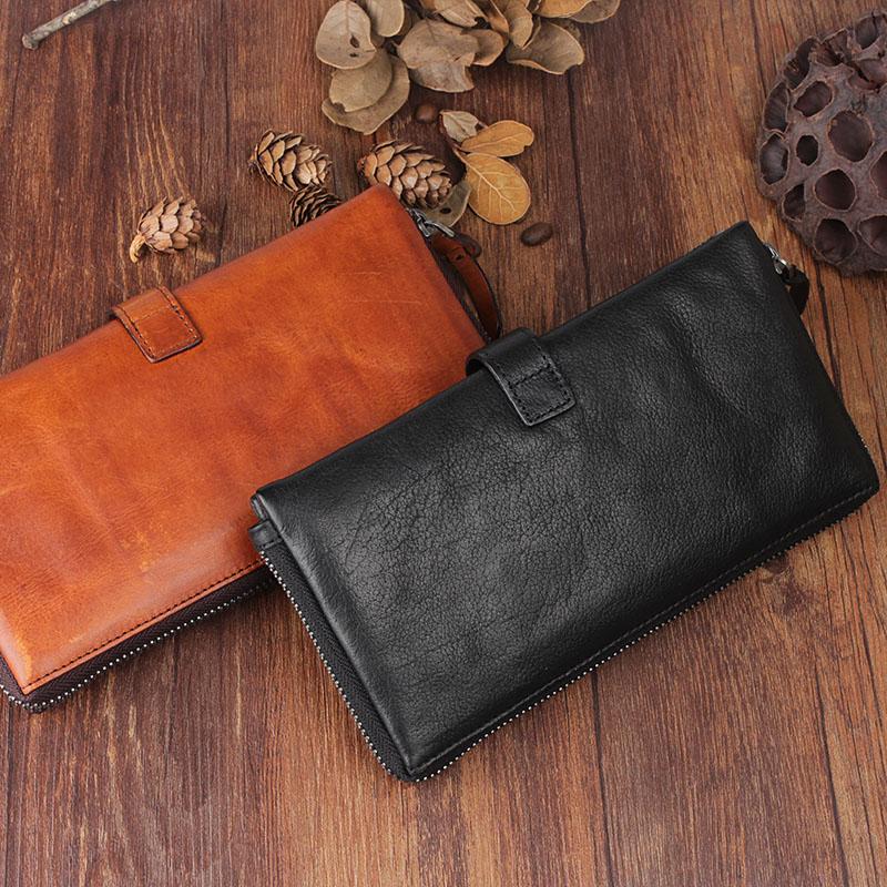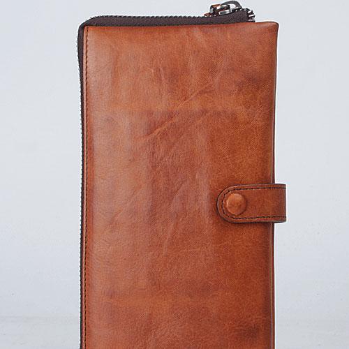 Design: Handmade Leather Mens Cool Long Leather Wallet Bifold Clutch Wallet for Men