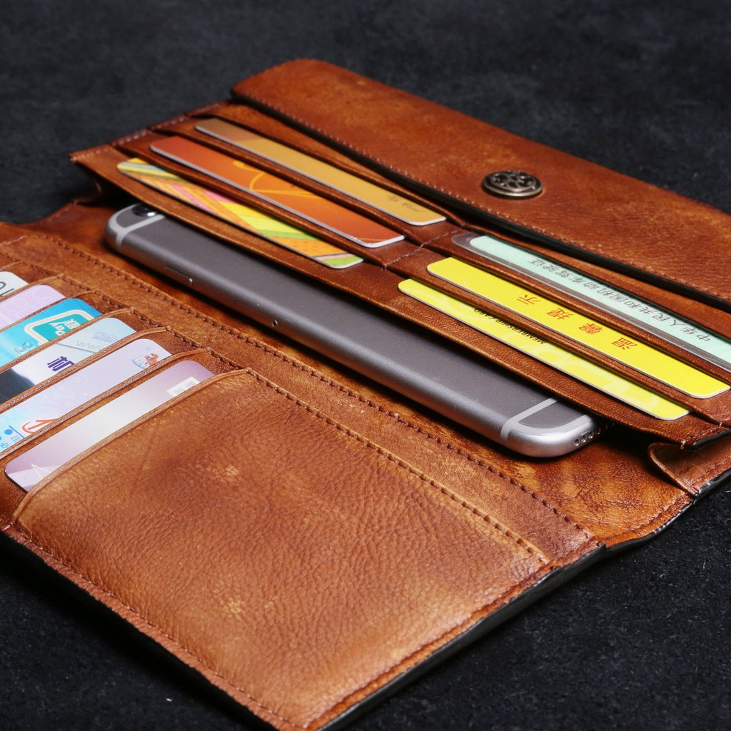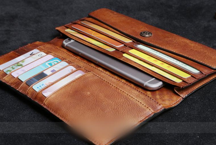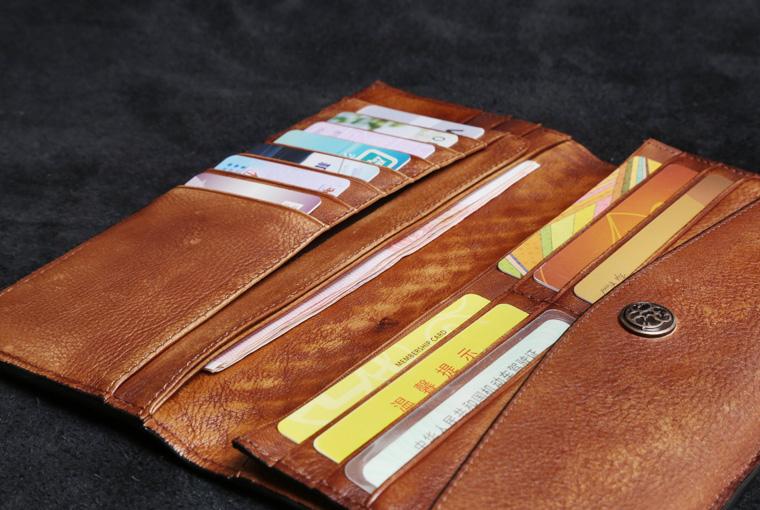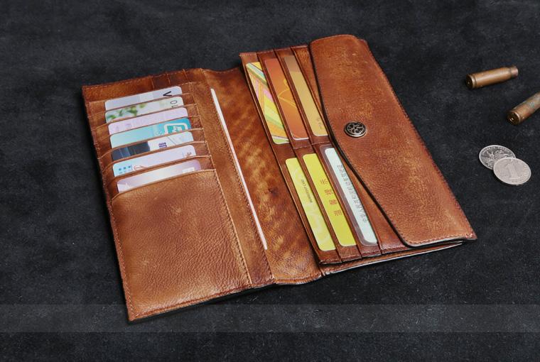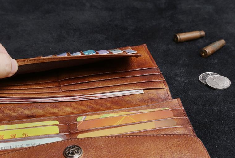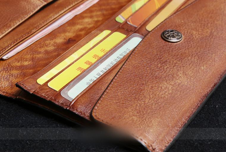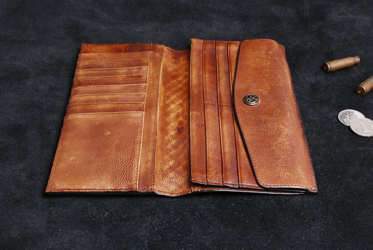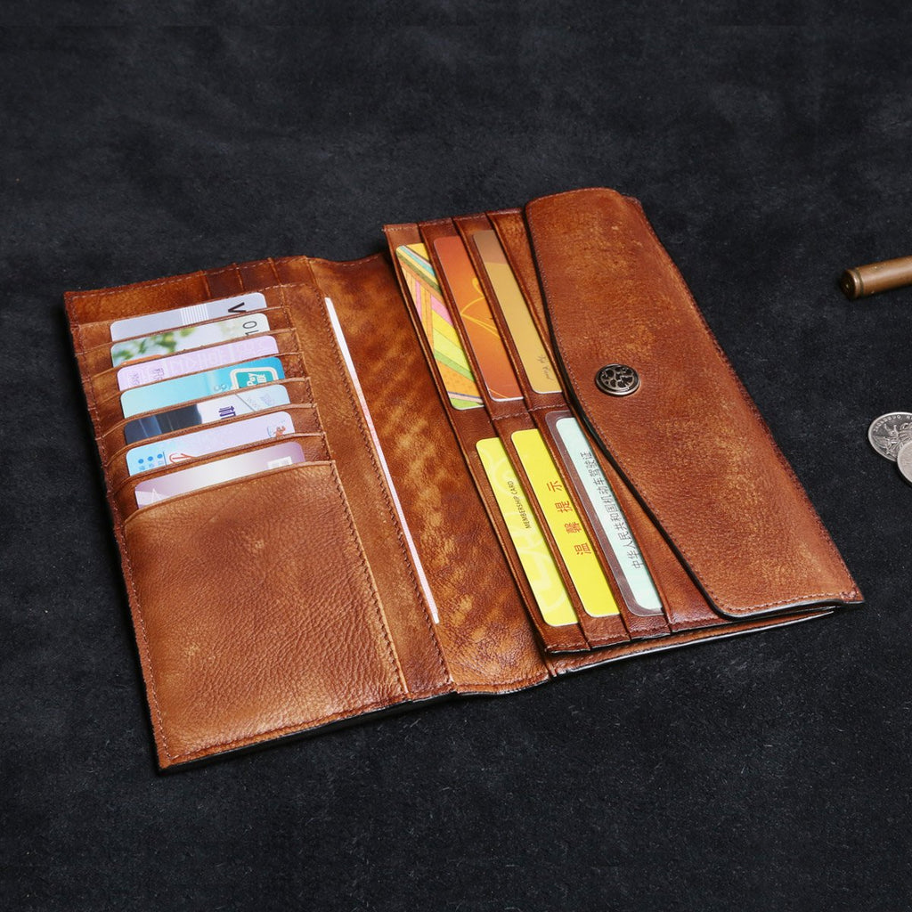 Design: Handmade Leather Mens Cool Long Leather Wallet Card Wallet Clutch Wristlet Wallet for Men