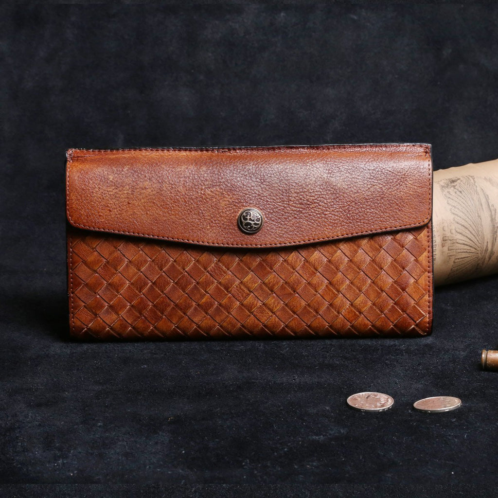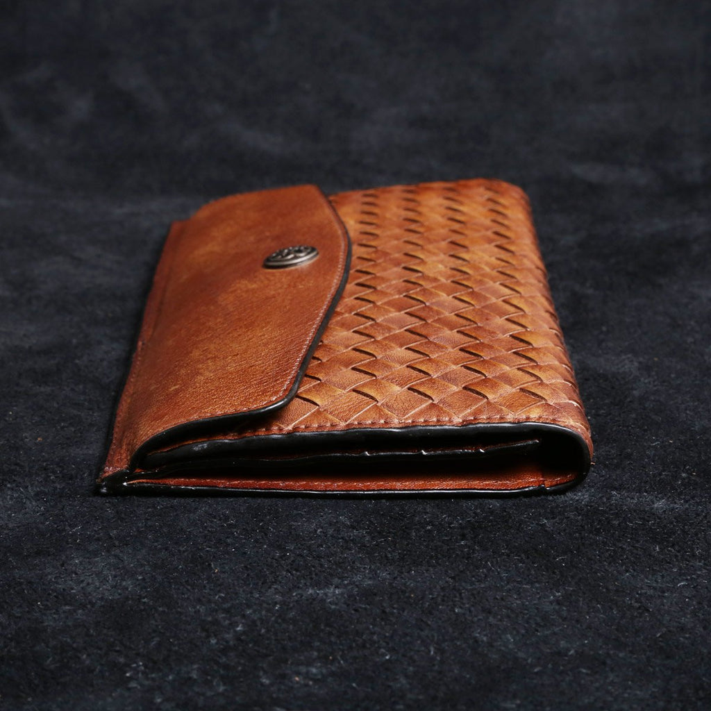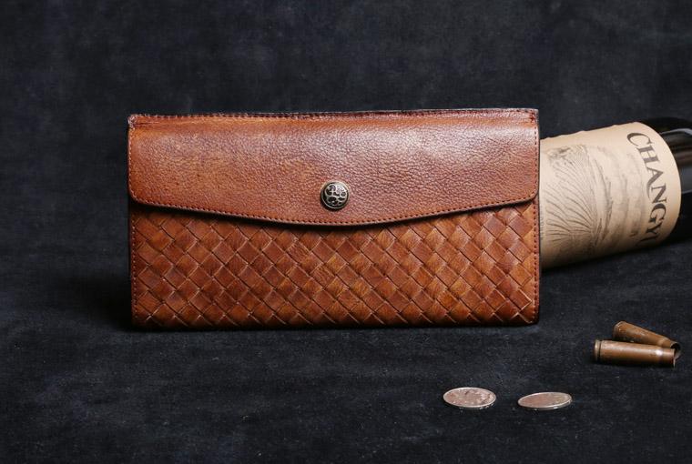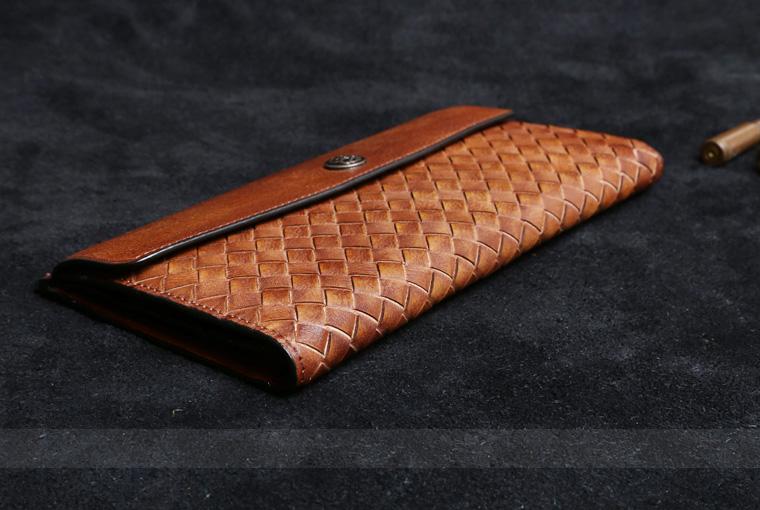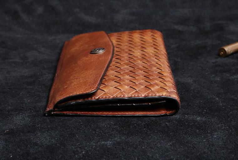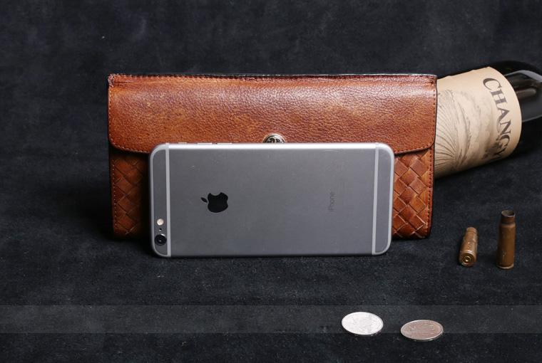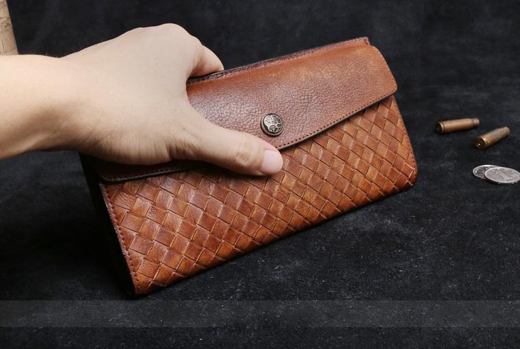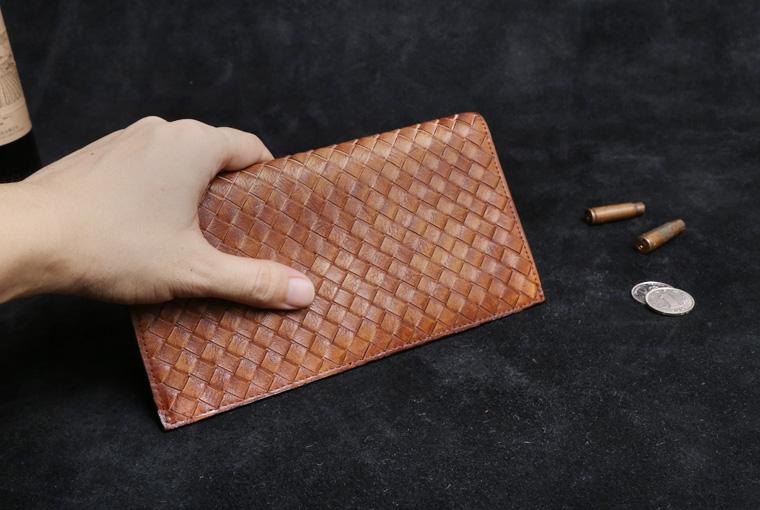 Design: Handmade Leather Mens Cool Long Leather Wallet Card Wallet Clutch Wristlet Wallet for Men