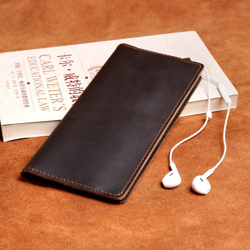 Design: Handmade Leather Mens Cool Long Leather Wallet Clutch Wristlet Wallet for Men