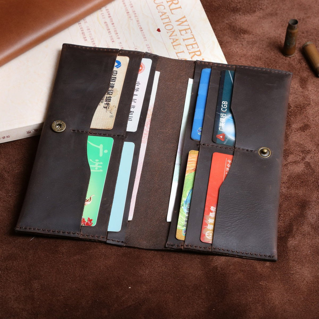 Design: Handmade Leather Mens Cool Long Leather Wallet Clutch Wristlet Wallet for Men
