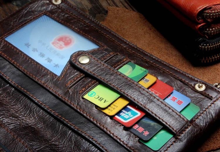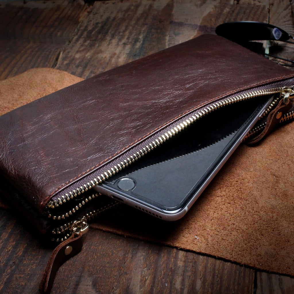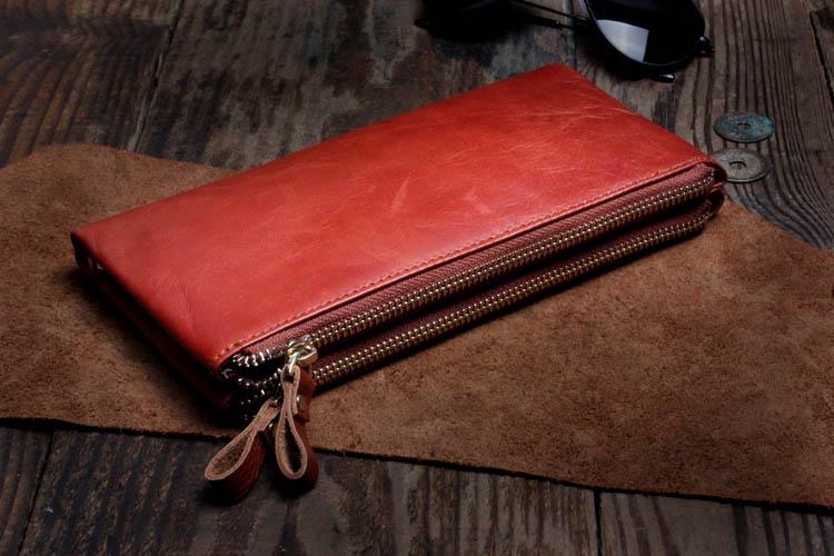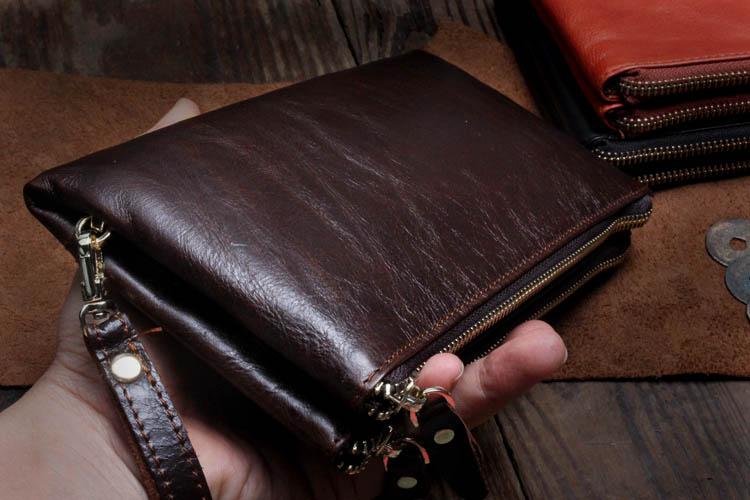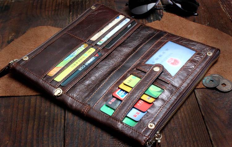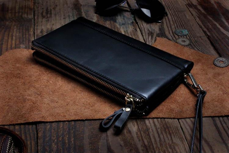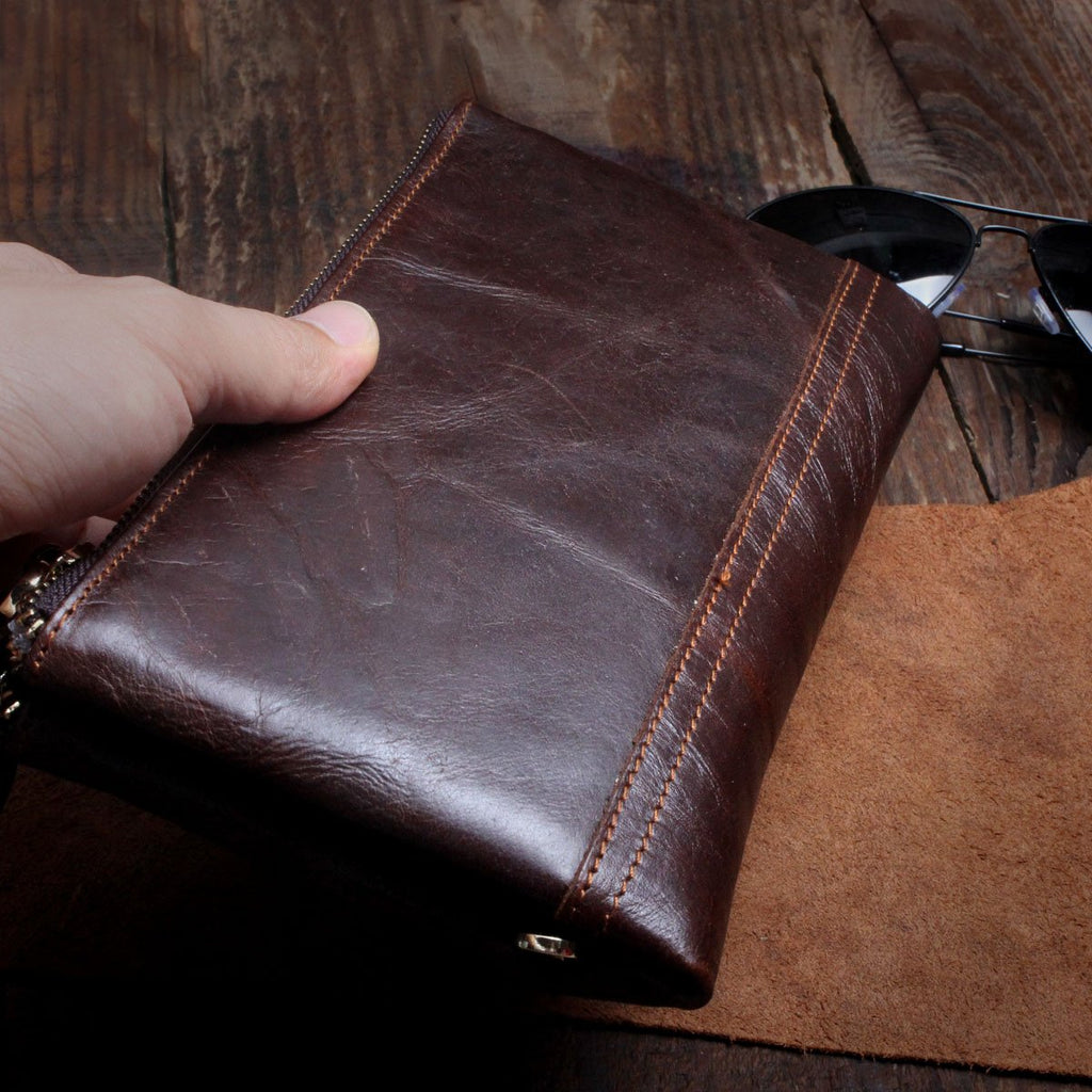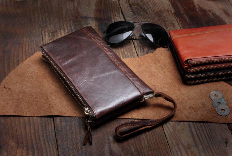Design: Handmade Leather Mens Cool Long Leather Wallet Slim Zipper Clutch Wristlet Wallet for Men