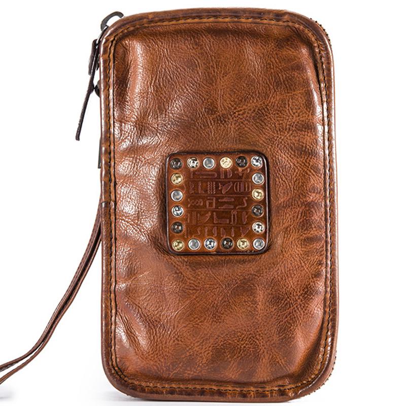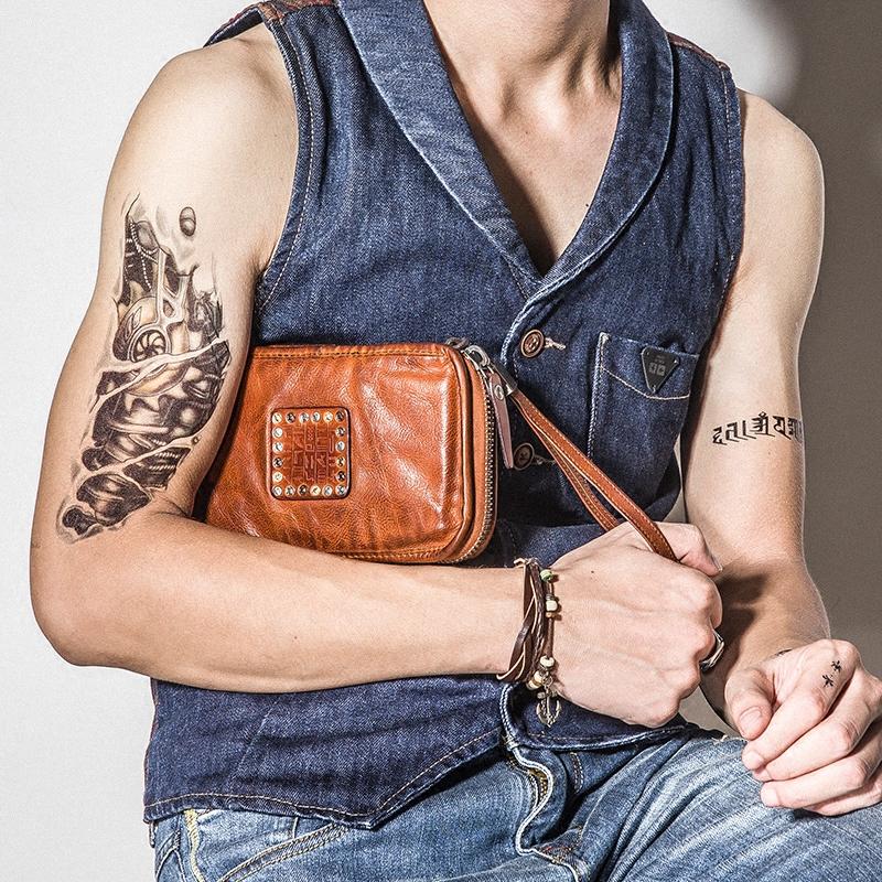 Design: Handmade Leather Mens Cool Long Leather Wallet Zipper Clutch Wallet for Men