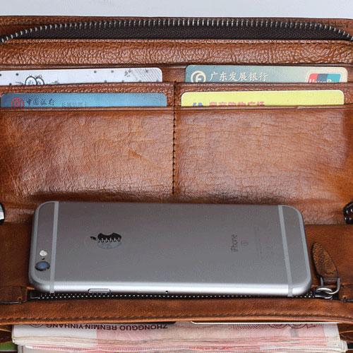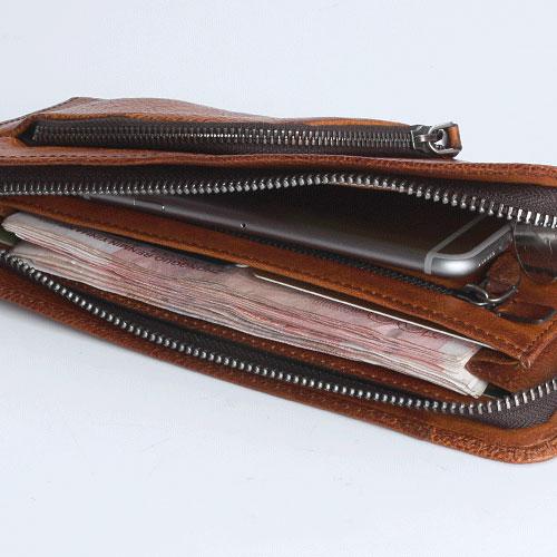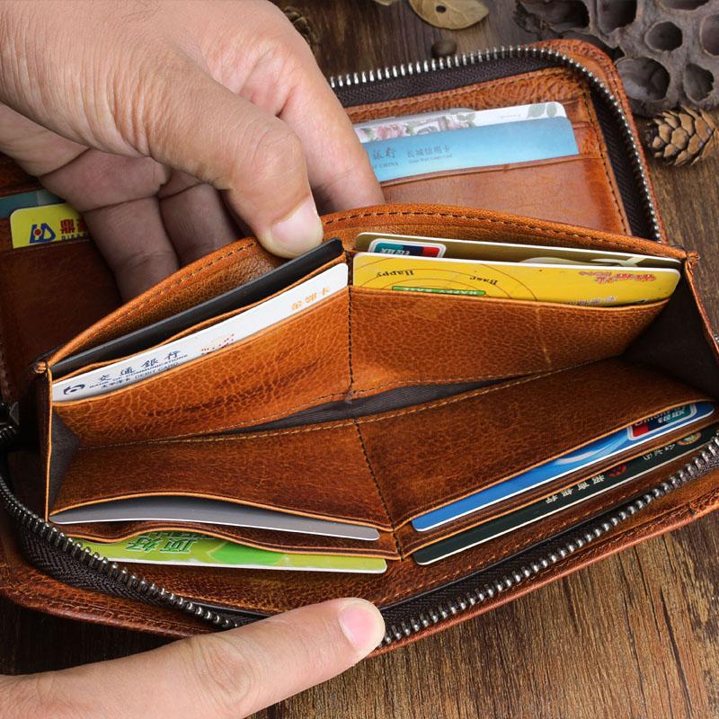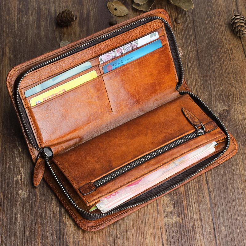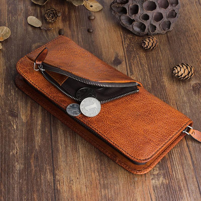 Design: Handmade Leather Mens Cool Long Leather Wallet Zipper Phone Clutch Wallet