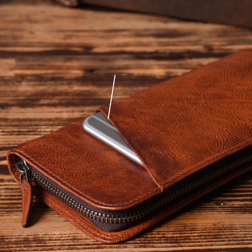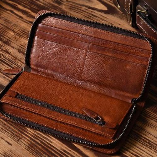 Design: Handmade Leather Mens Cool Long Leather Wallet Zipper Phone Clutch Wallet for Men