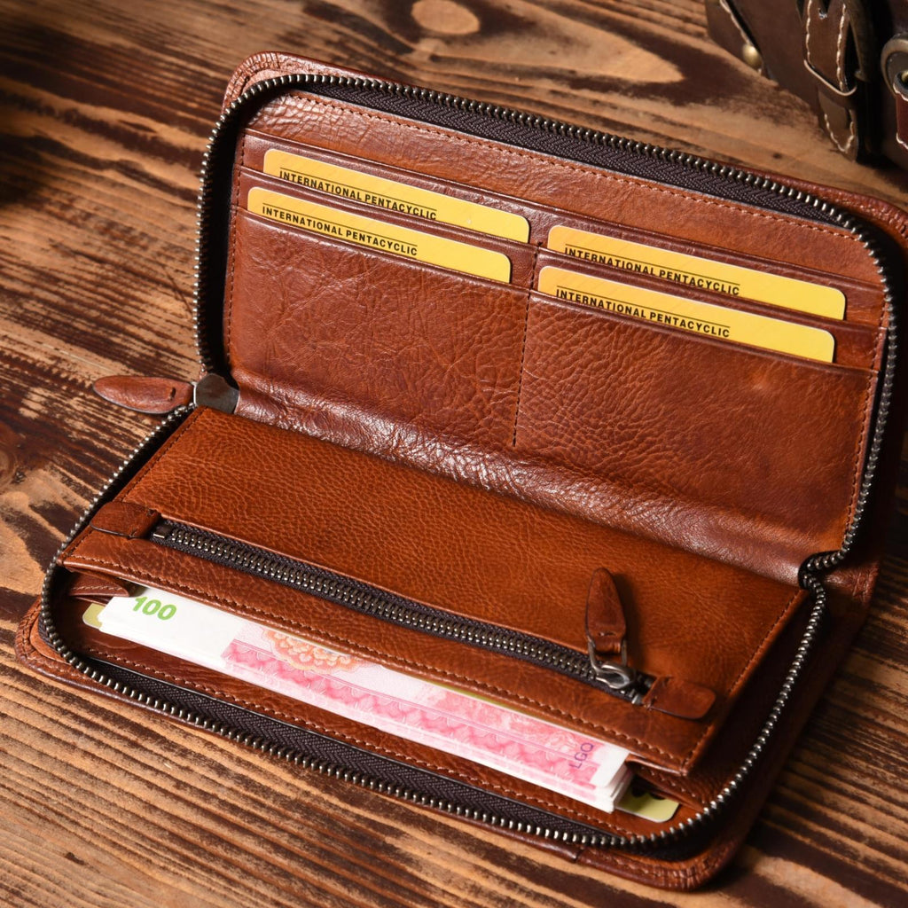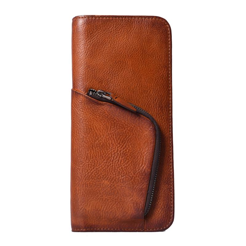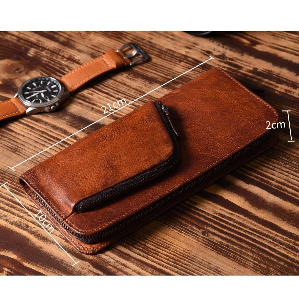 Style: Handmade Leather Mens Cool Long Leather Wallet Zipper Phone Clutch Wallet for Men