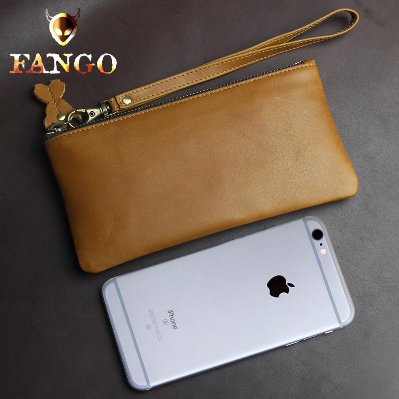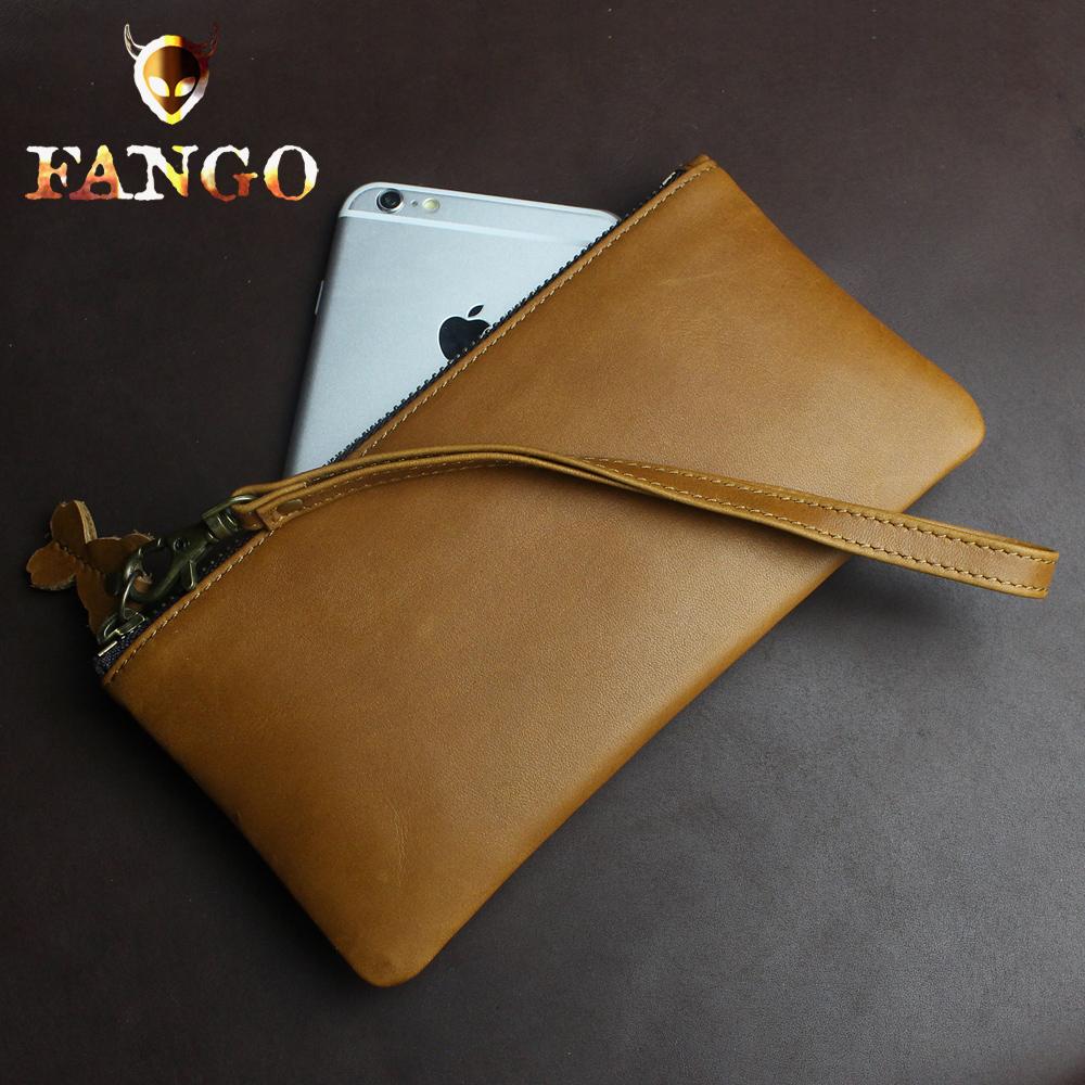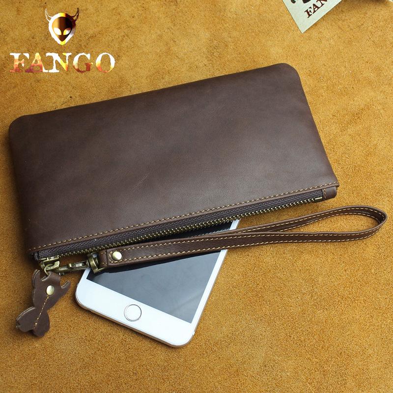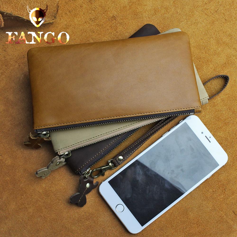 Design: Handmade Leather Mens Cool Zipper Phone Travel Long Wallet Card Holder Card Slim Clutch Wallets for Men