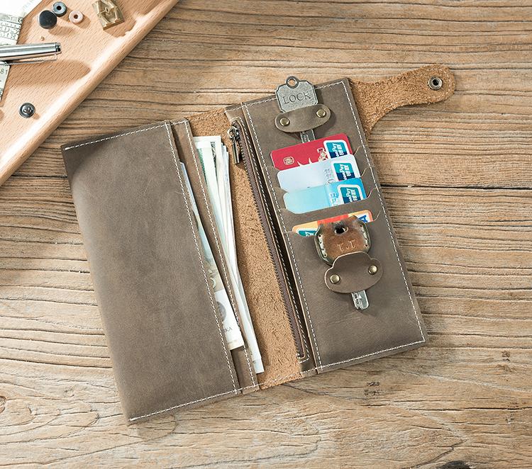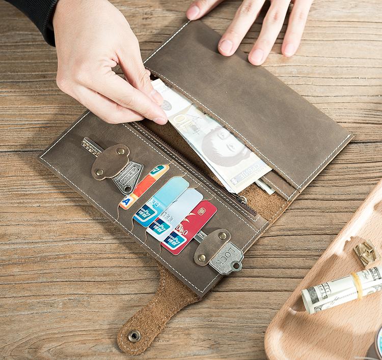 Design: Handmade Leather Mens Clutch Wallet Cool Leather Wallet Long Phone Wallets for Men