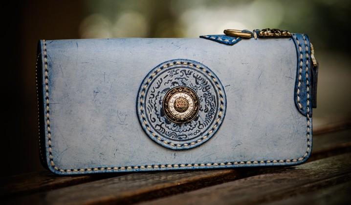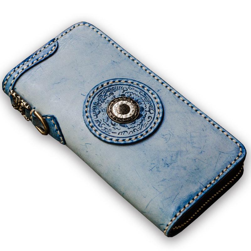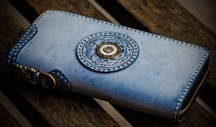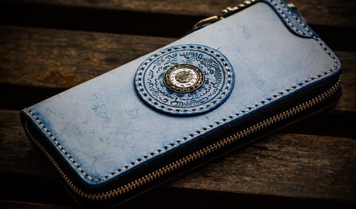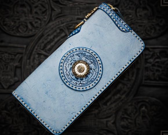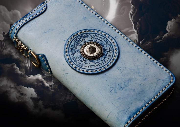 Design: Handmade Leather Mens Tibetan Chain Biker Wallet Cool Leather Wallet Long Clutch Wallets for Men