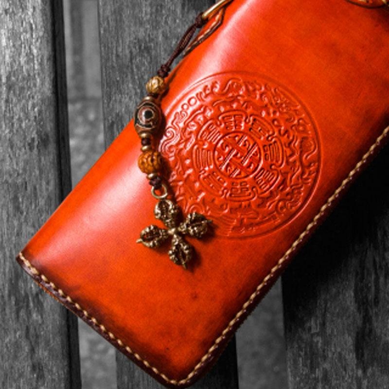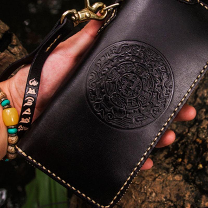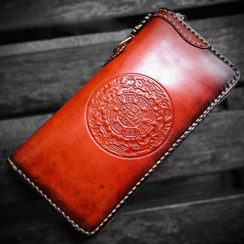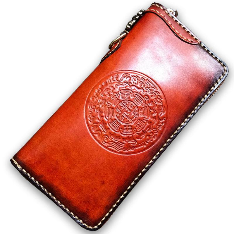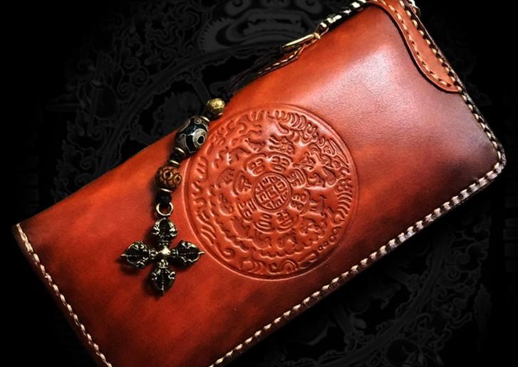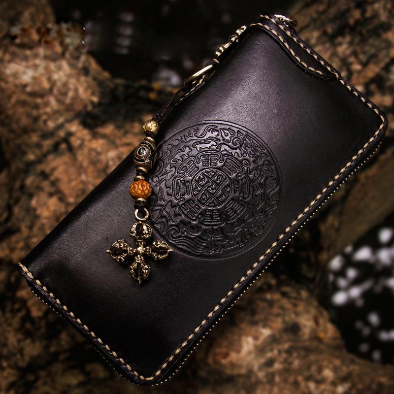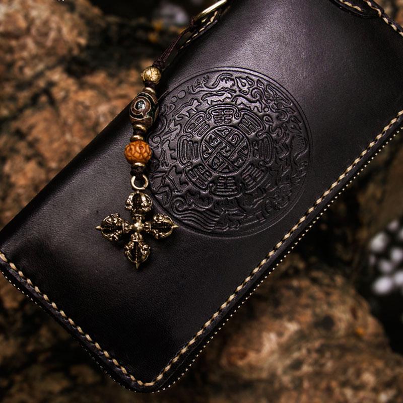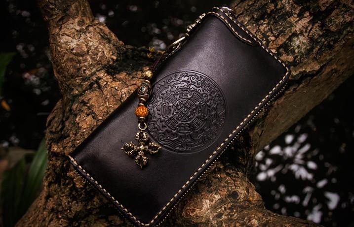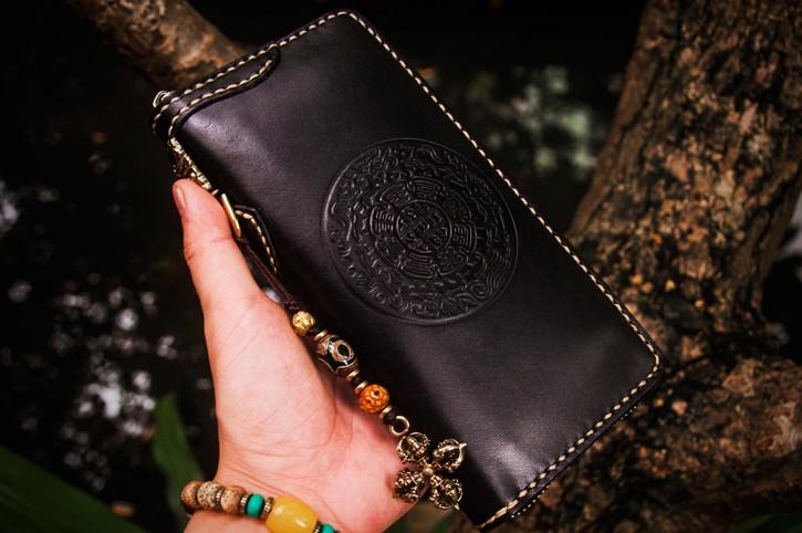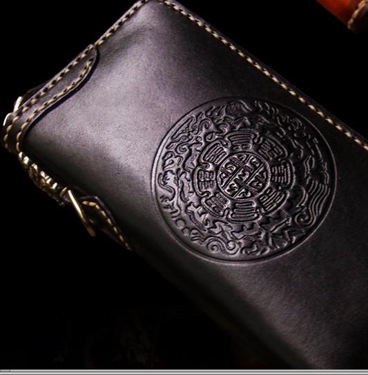 Design: Handmade Leather Mens Tibetan Chain Biker Wallet Cool Leather Wallet Long Clutch Wallets for Men