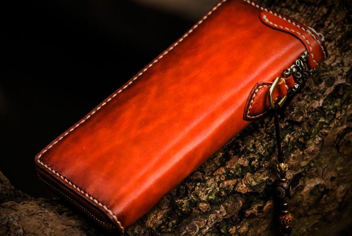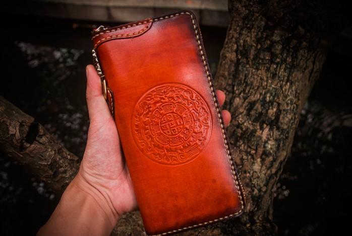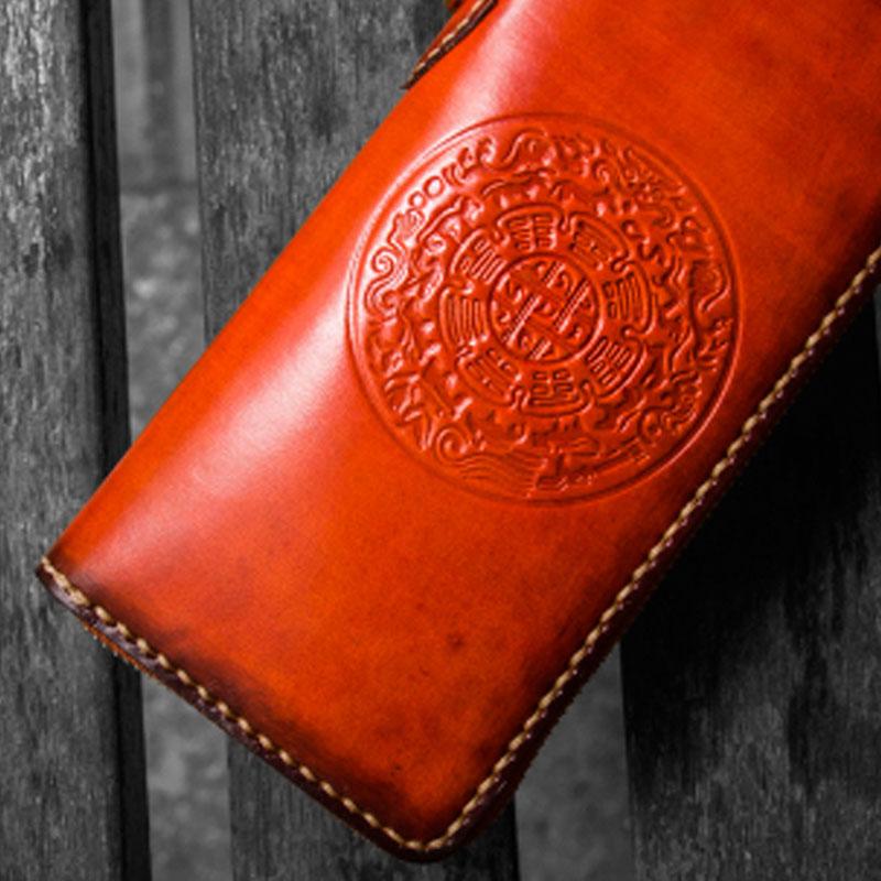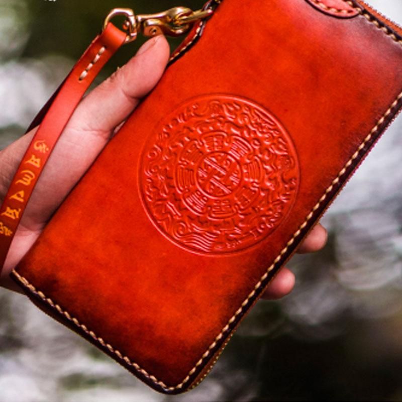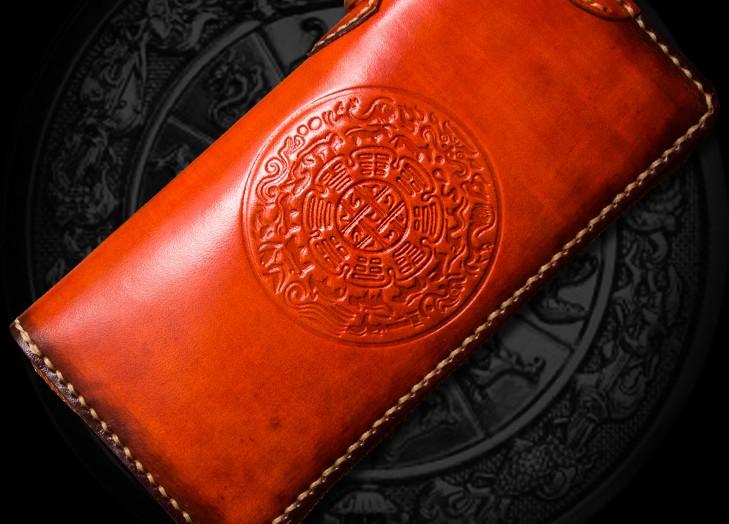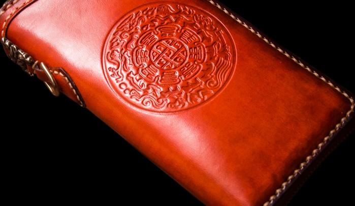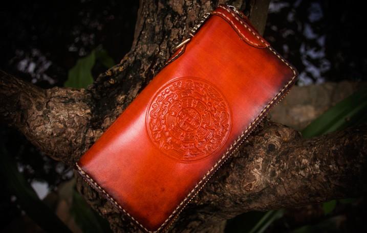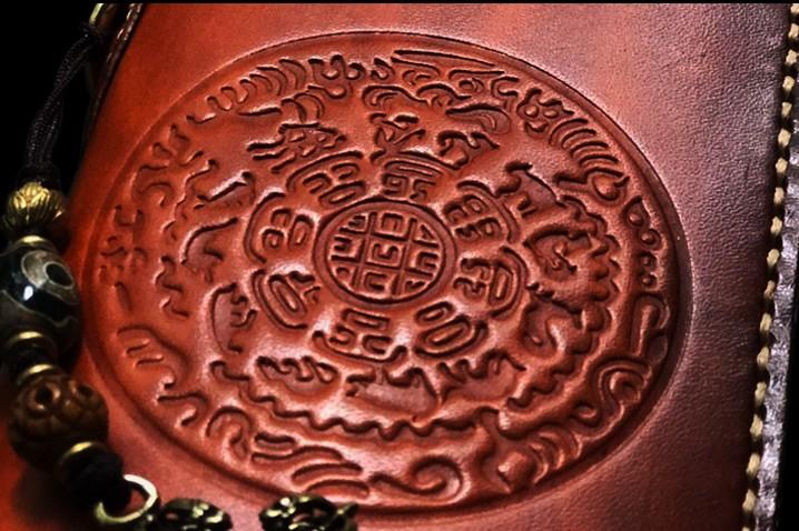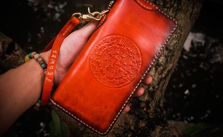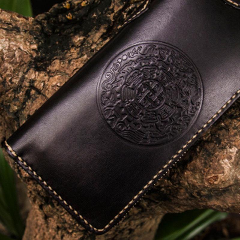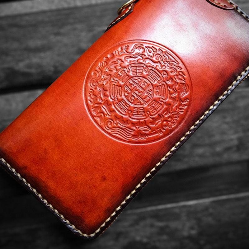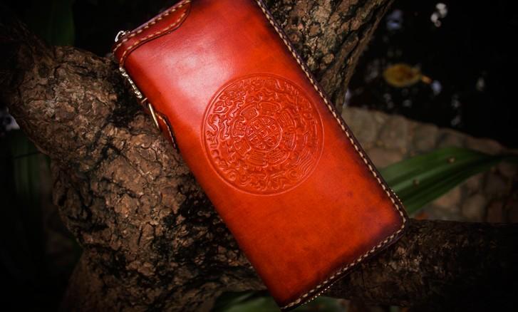 Design: Handmade Leather Mens Tibetan Chain Biker Wallet Cool Leather Wallet Long Clutch Wallets for Men