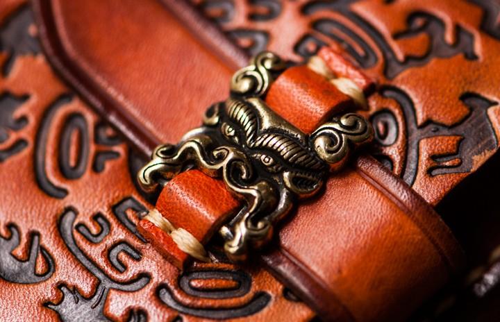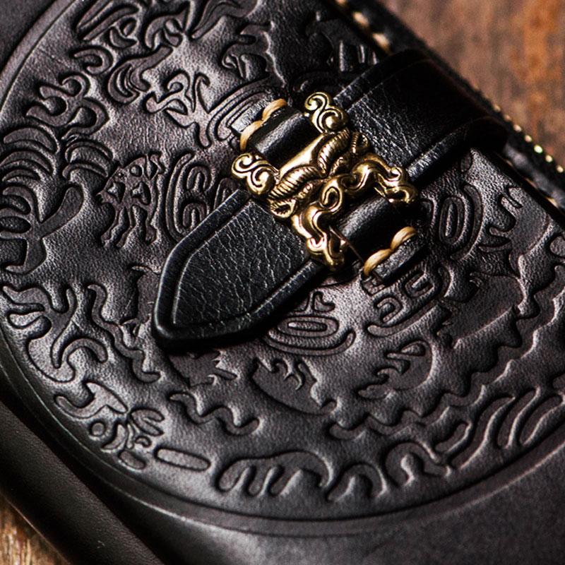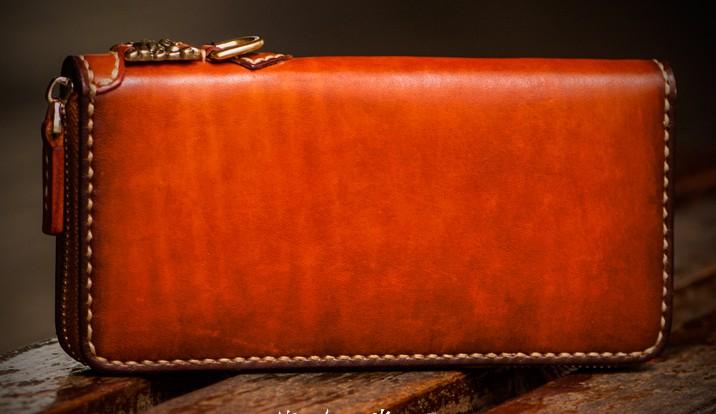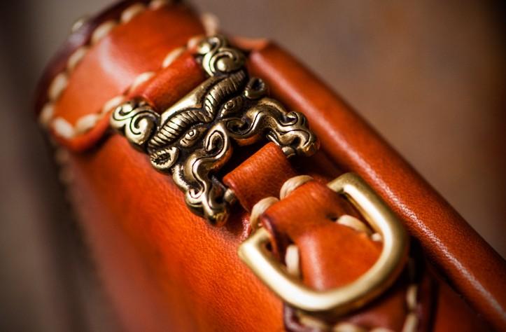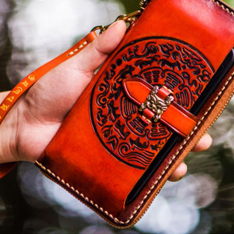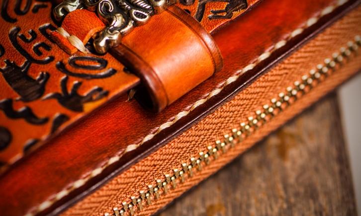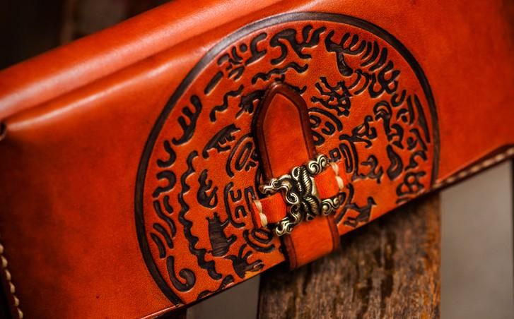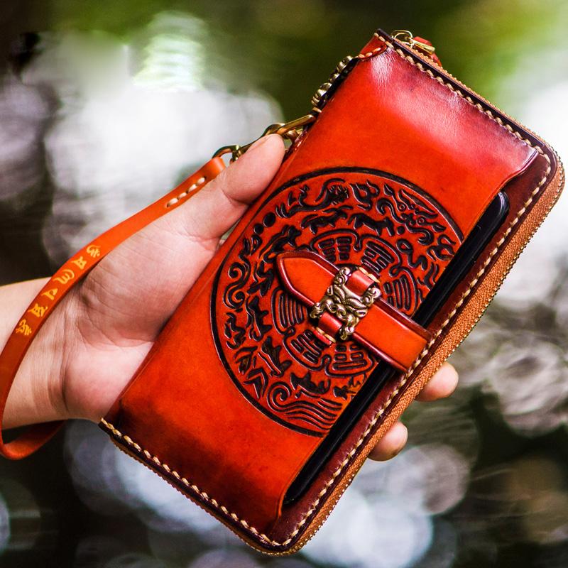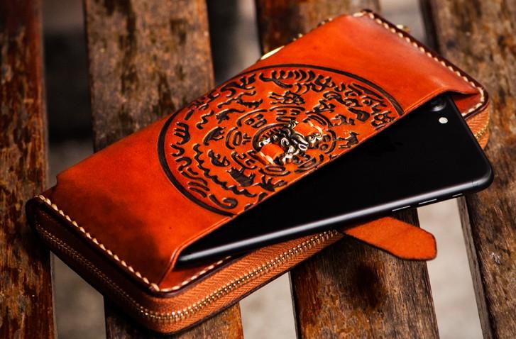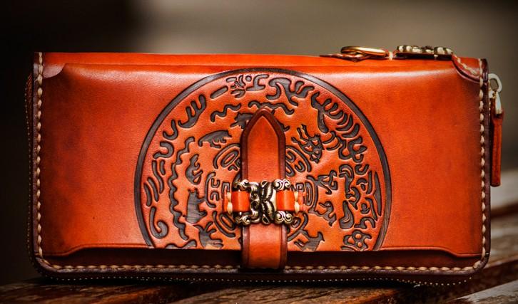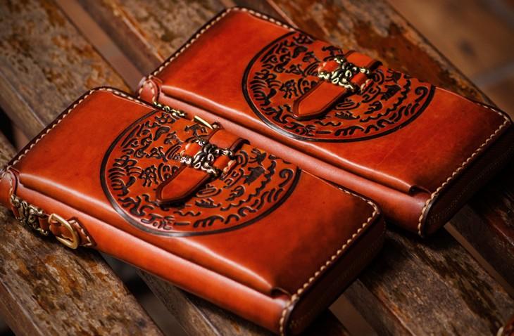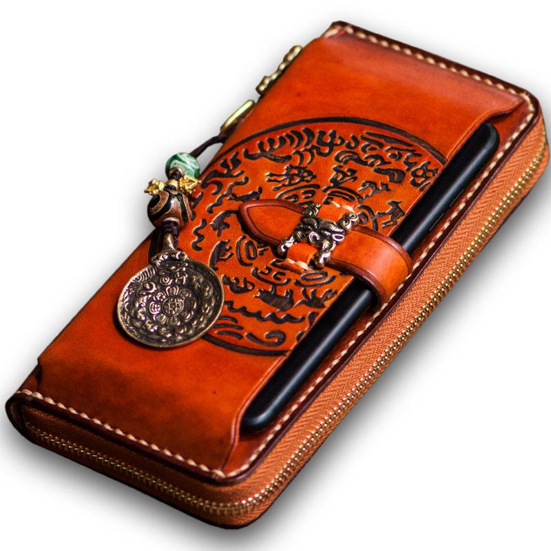 Design: Handmade Leather Mens Tibetan Chain Biker Wallet Cool Leather Wallet Long Clutch Wallets for Men