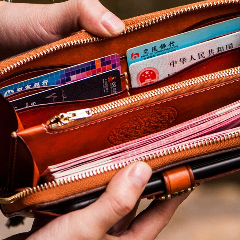 Slots: 2 full size bill slot, 8 card holders, 1 zipper slot