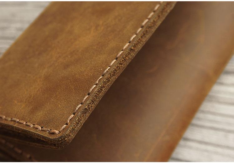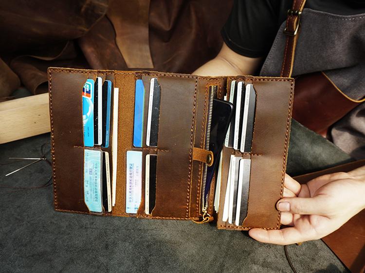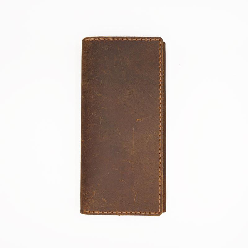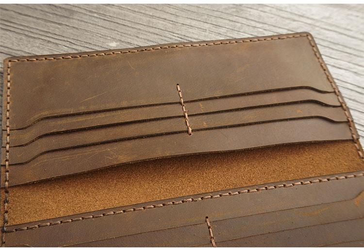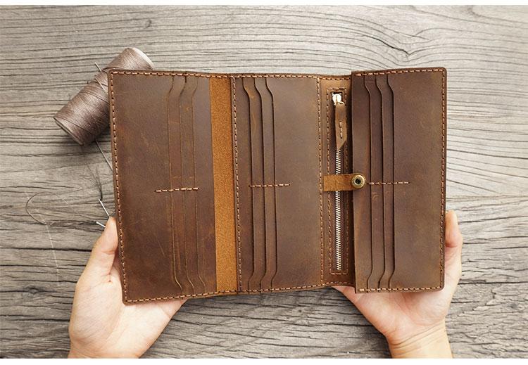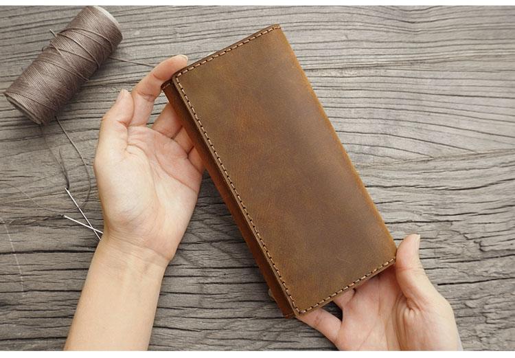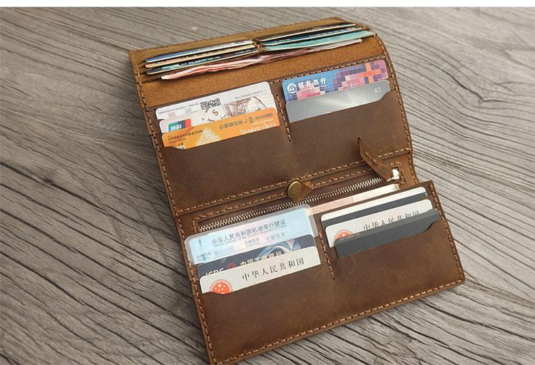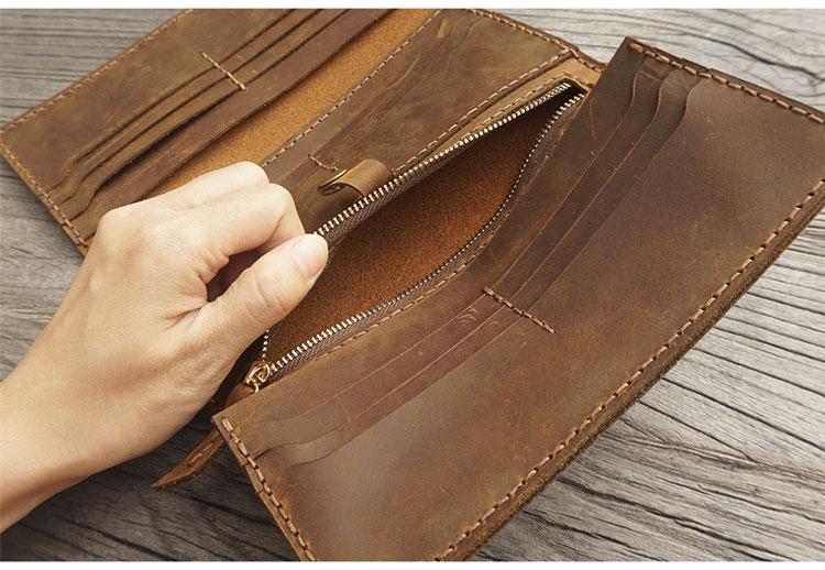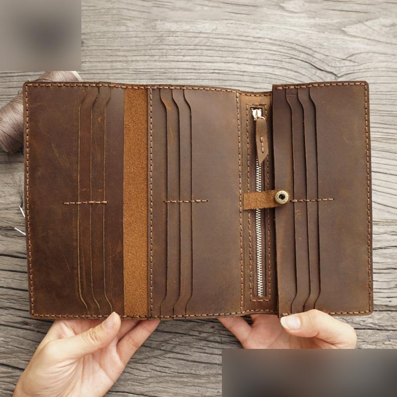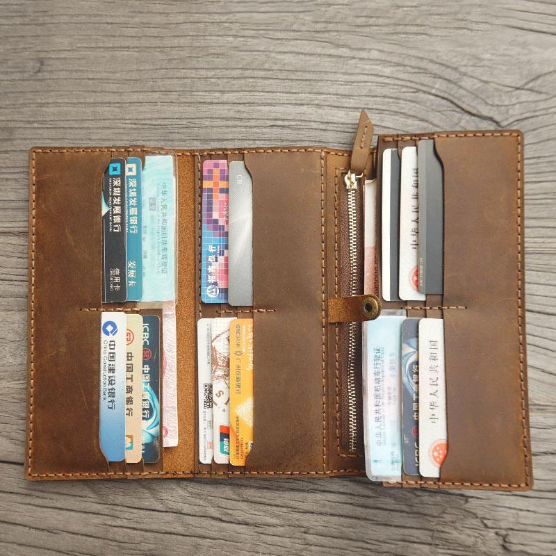 Design: Handmade Leather Mens Trifold long Wallet Lots Cards Checkbook Long Wallet for Men