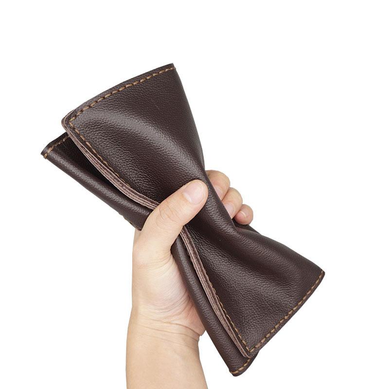 Handmade Leather Mens Trifold long Wallet Lots Cards Checkbook Long Wallet for Men