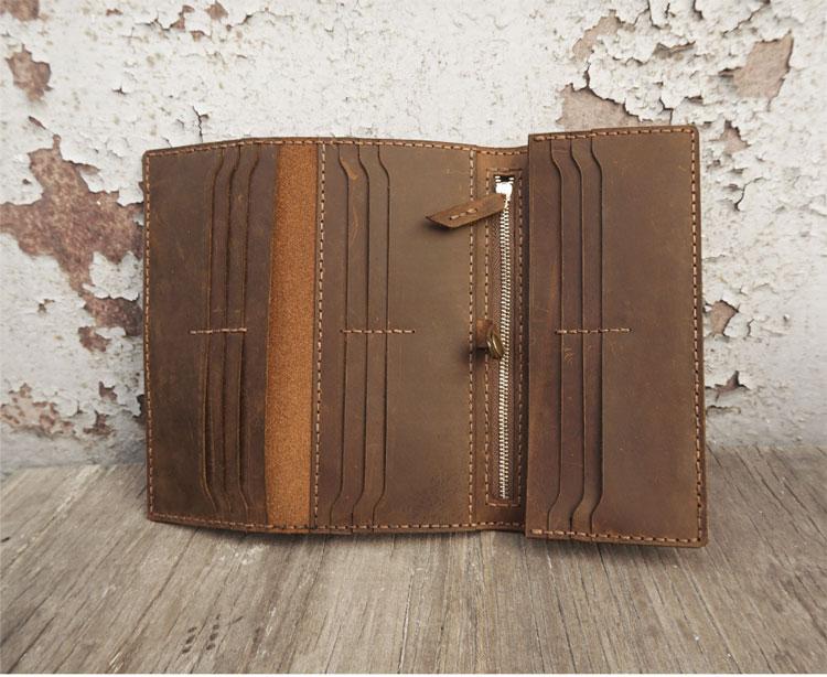 Style: Handmade Leather Mens Trifold long Wallet Lots Cards Checkbook Long Wallet for Men