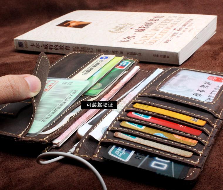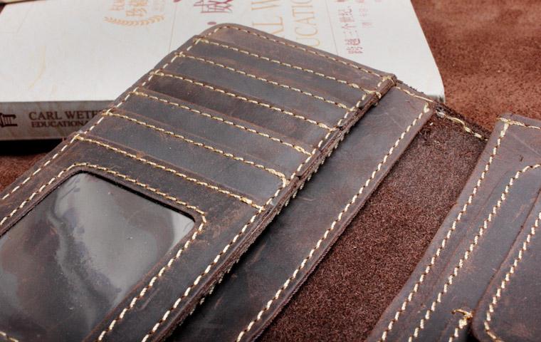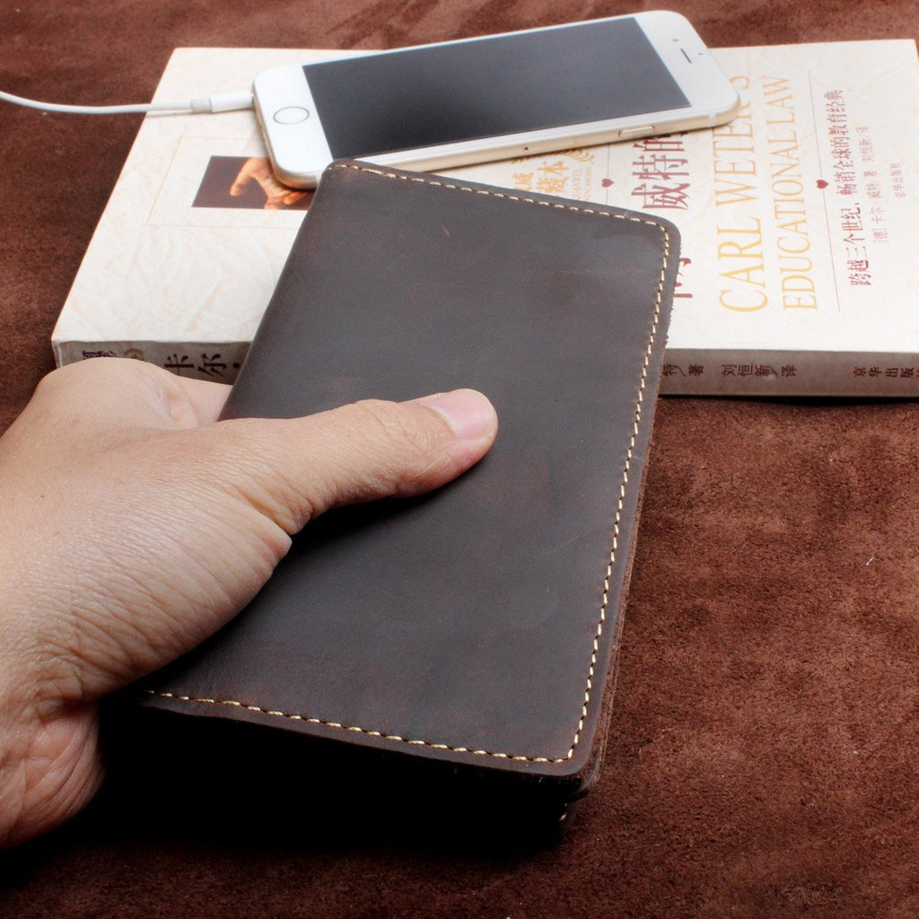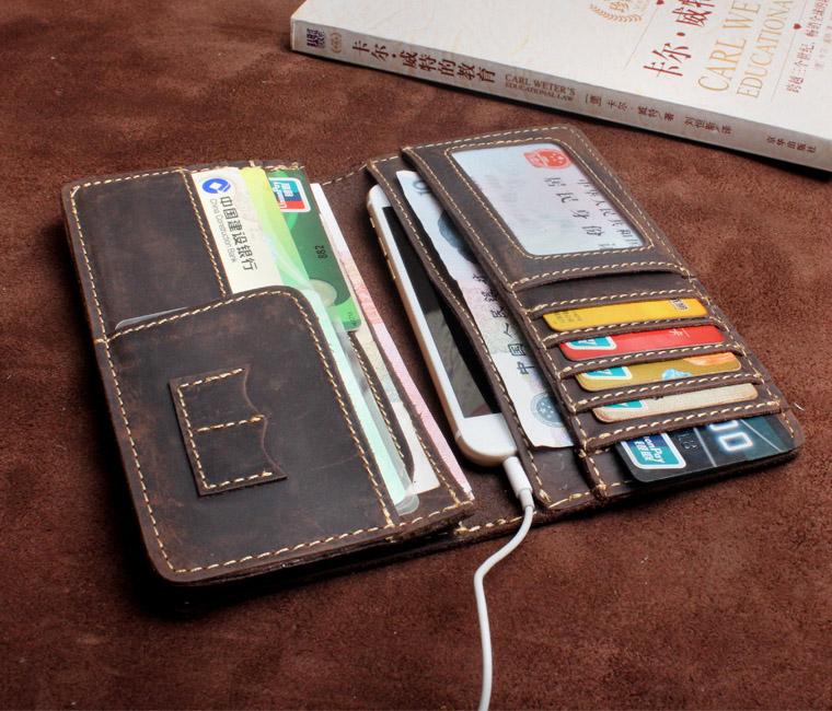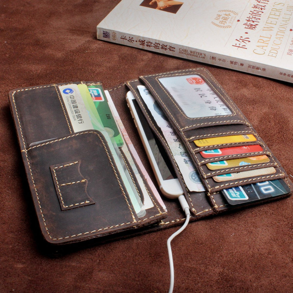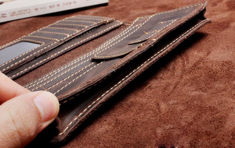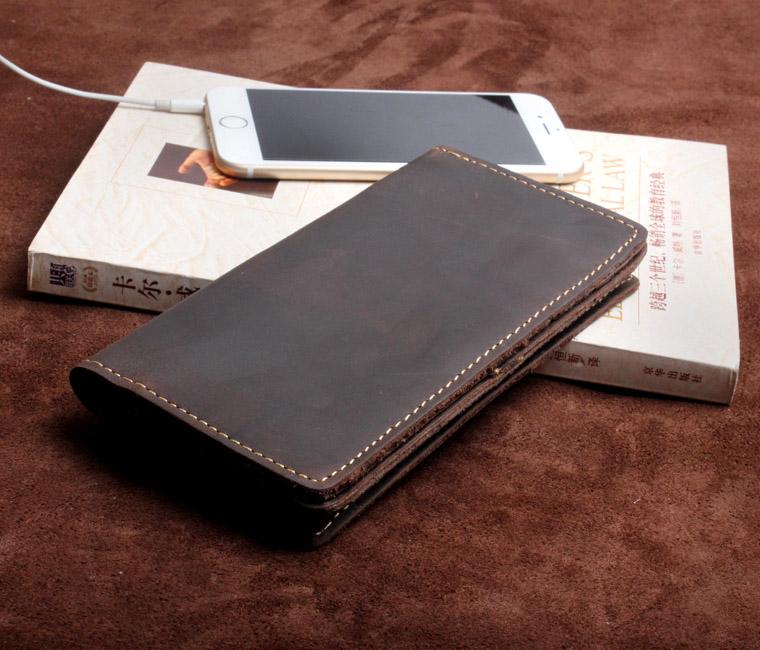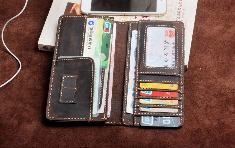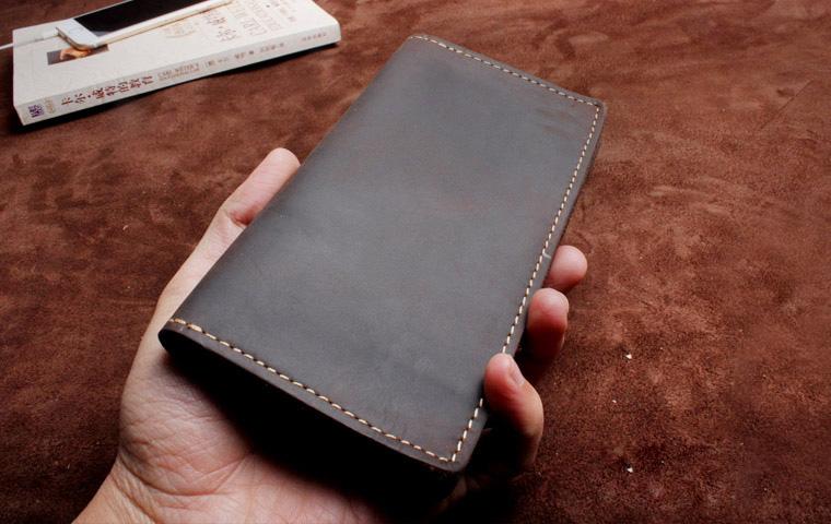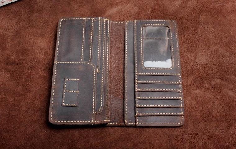 Design: Handmade Leather Mens Wallet Cool Long Leather Wallet Clutch Wristlet Wallet for Men