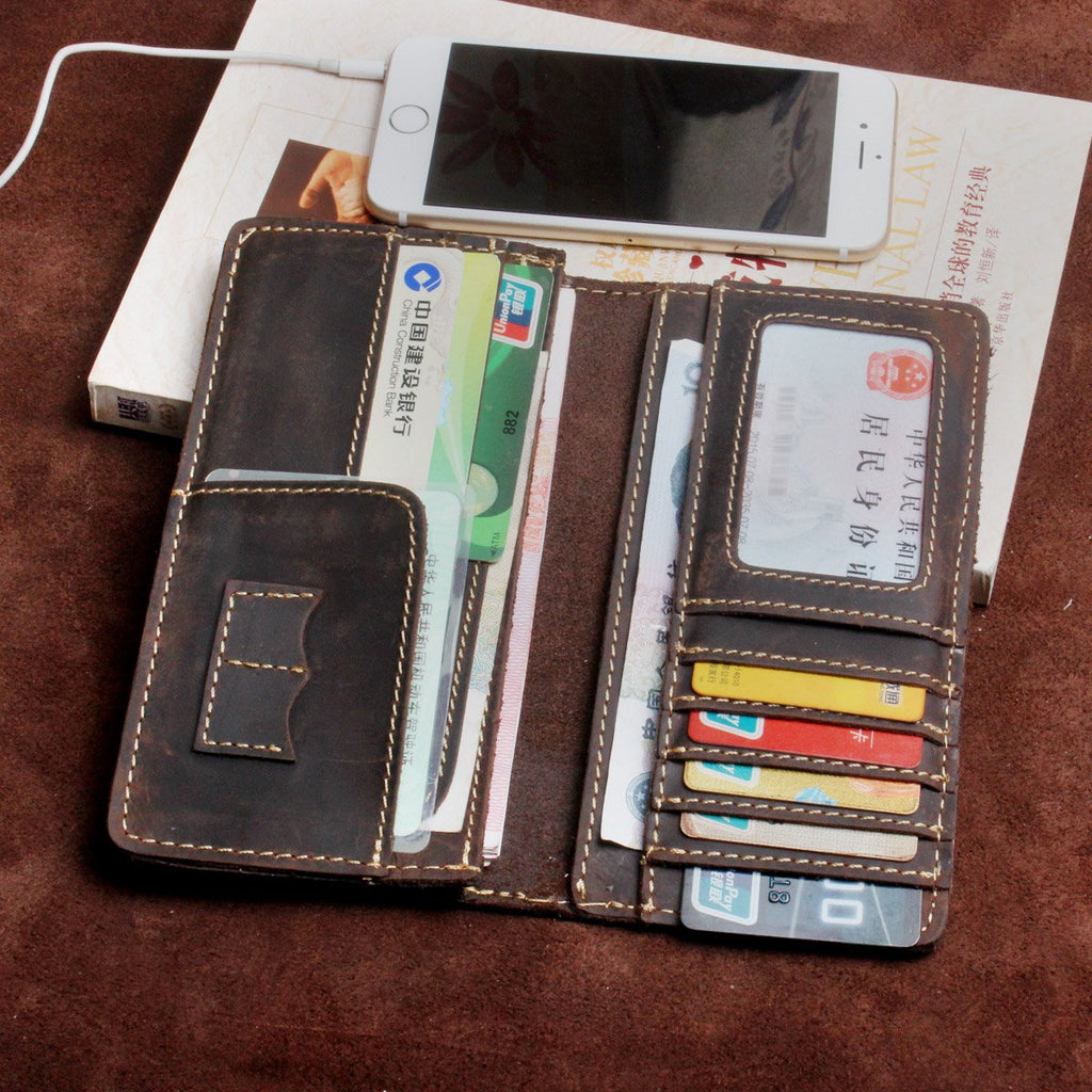 Handmade Leather Mens Wallet Cool Long Leather Wallet Clutch Wristlet Wallet for Men
