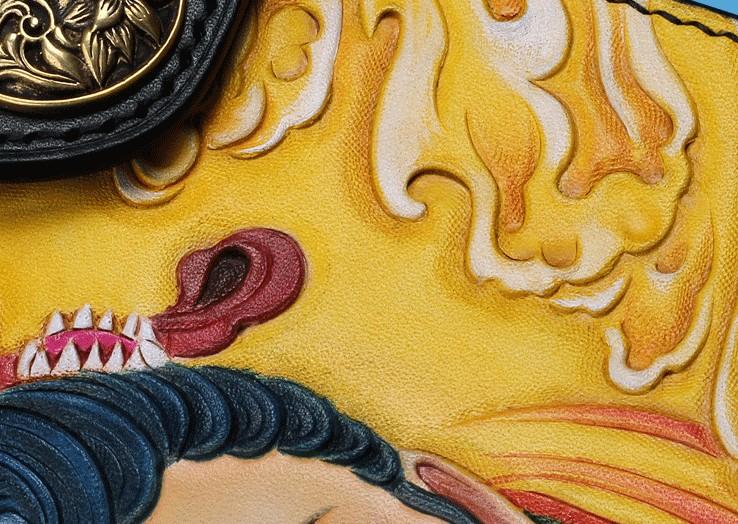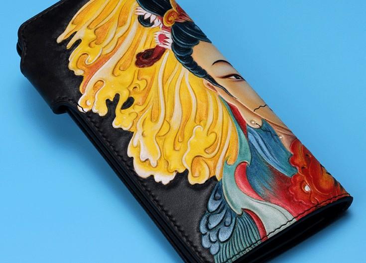 Design: Handmade Leather Quan yin Buddha Mens Chain Biker Wallet Cool Leather Wallet With Chain Wallets for Men