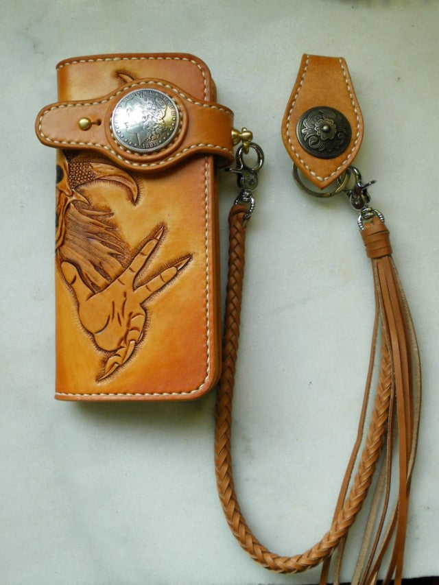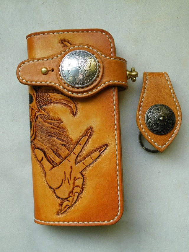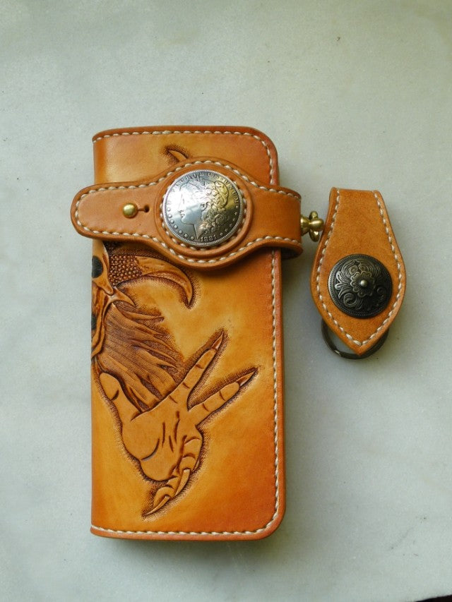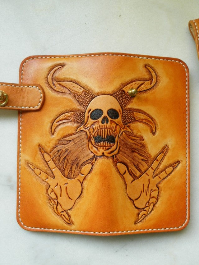 Design: Handmade Leather Skull Devil Mens Chain Wallet Biker Wallet Cool Leather Wallet Long Tooled Wallets for Men