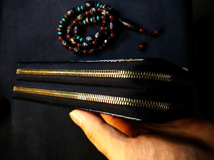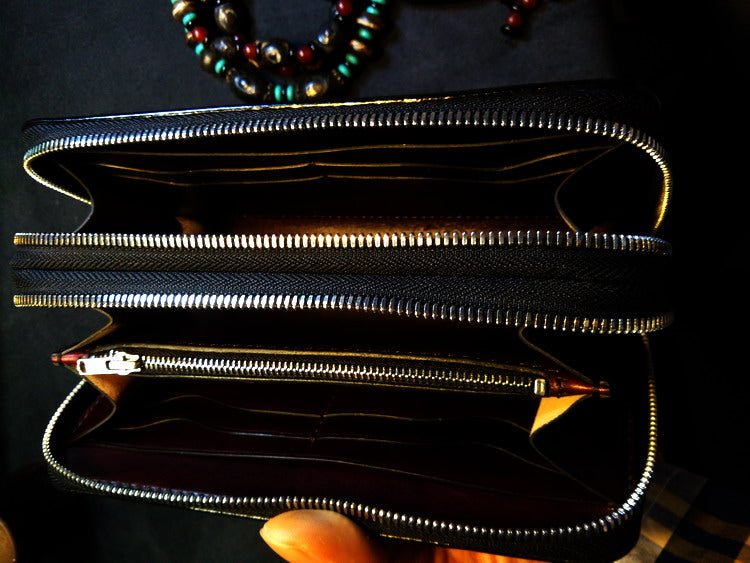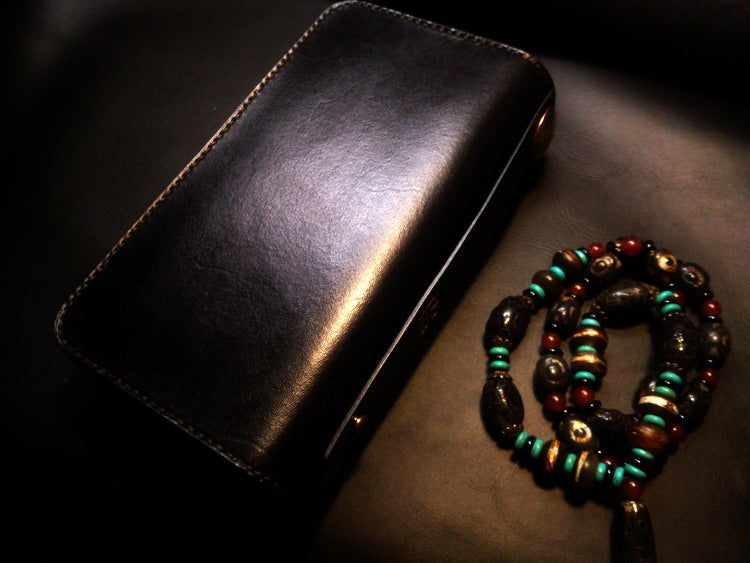 Style: Handmade Leather Skull Double Zipper Mens Long Wallet Biker Wallet Cool Leather Wallet Long Tooled Wallets for Men