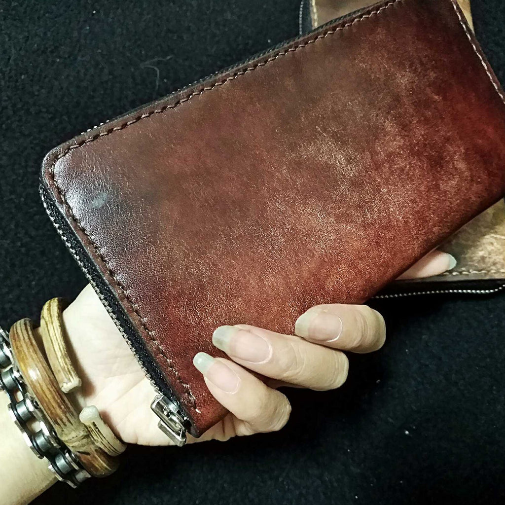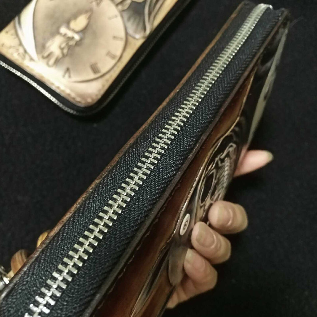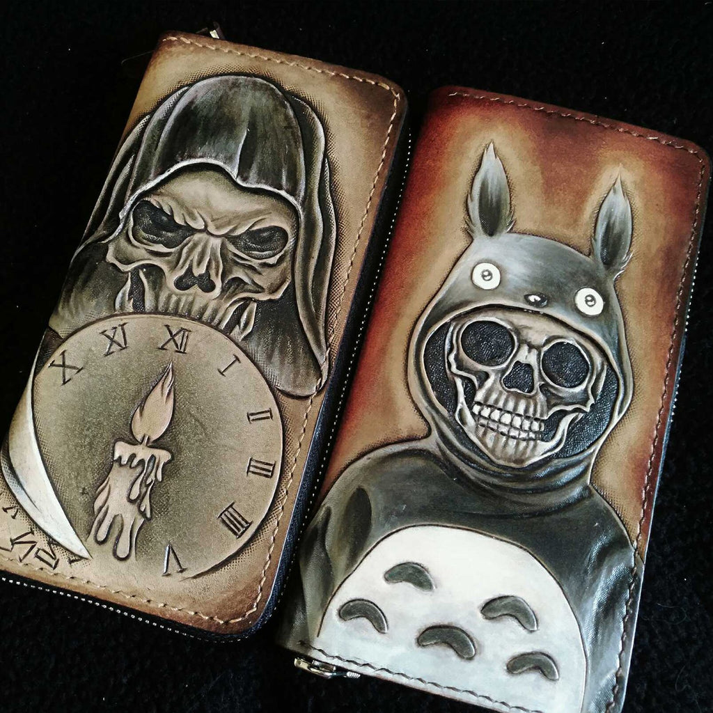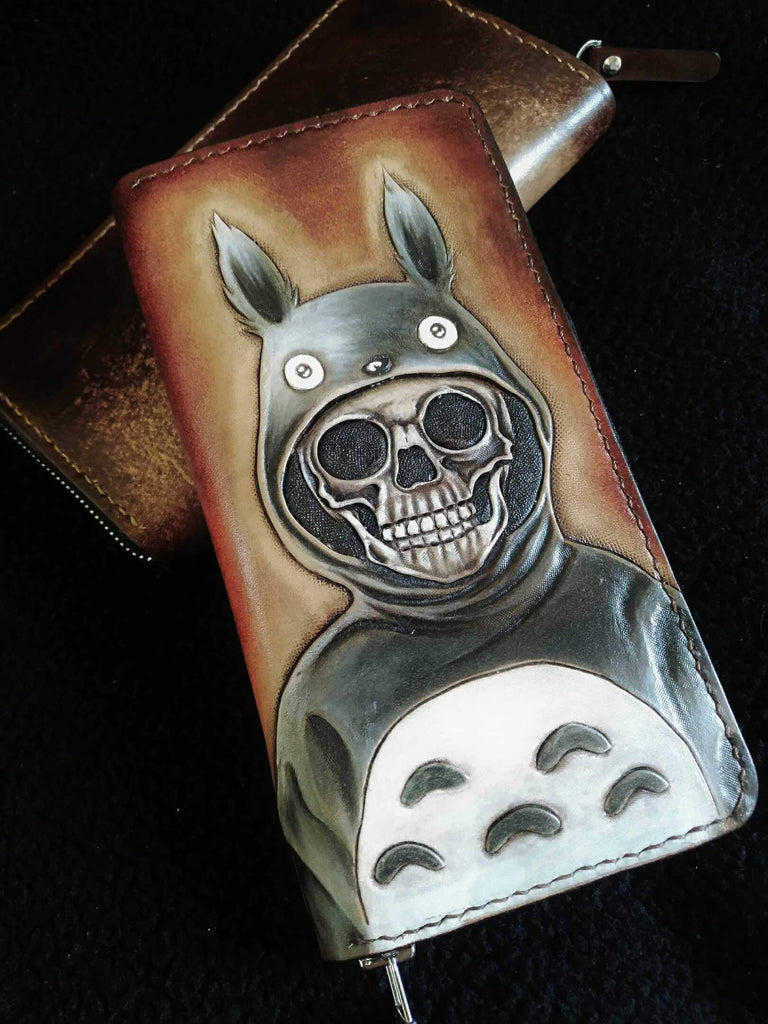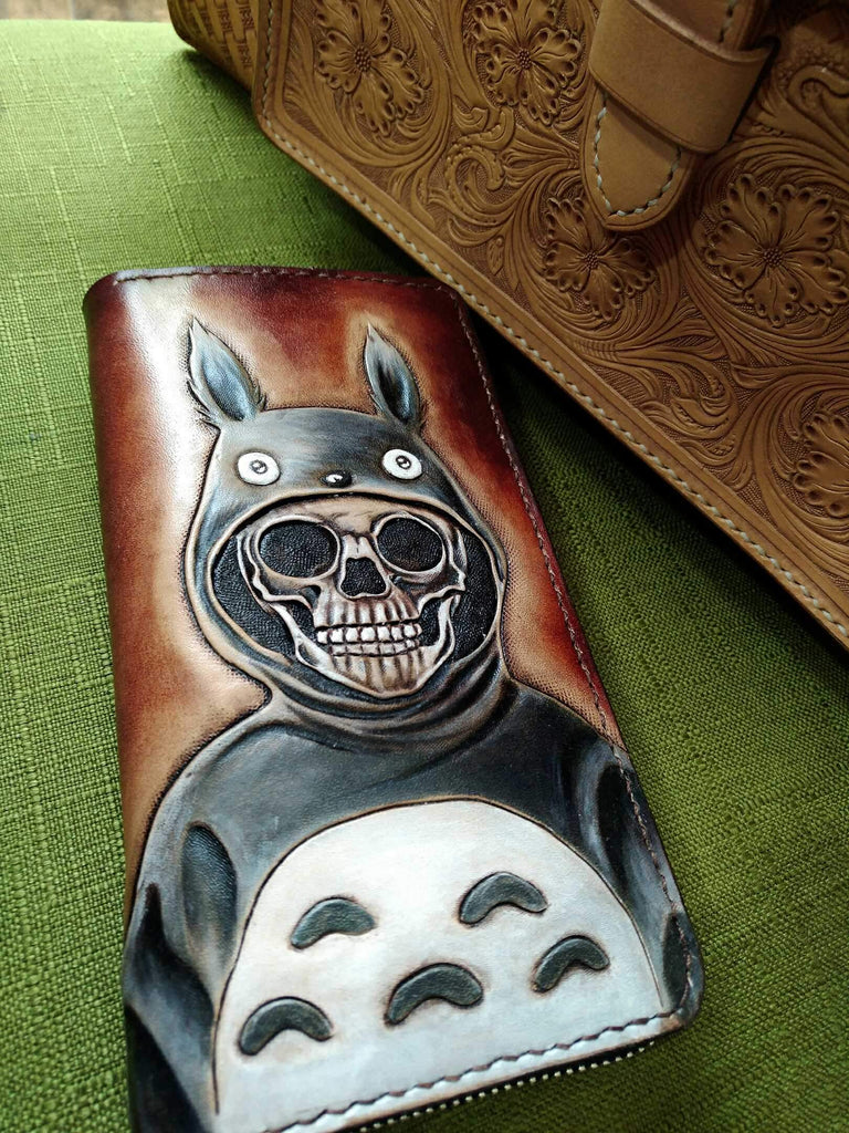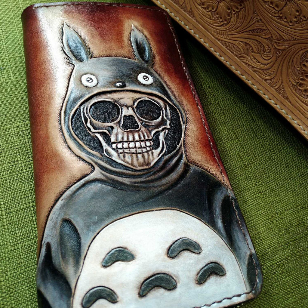 Style: Handmade Leather Skull Totoro Tooled Mens Long Wallet Cool Leather Wallet Clutch Wallet for Men
