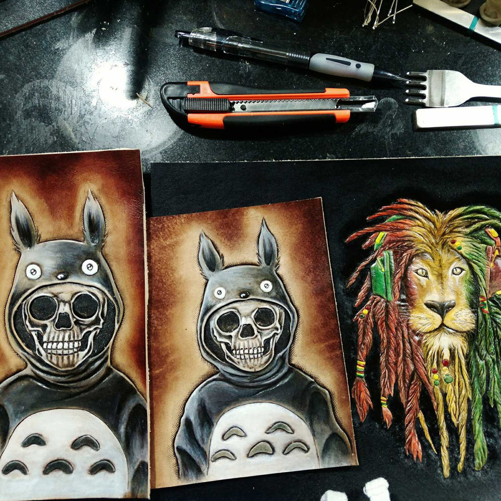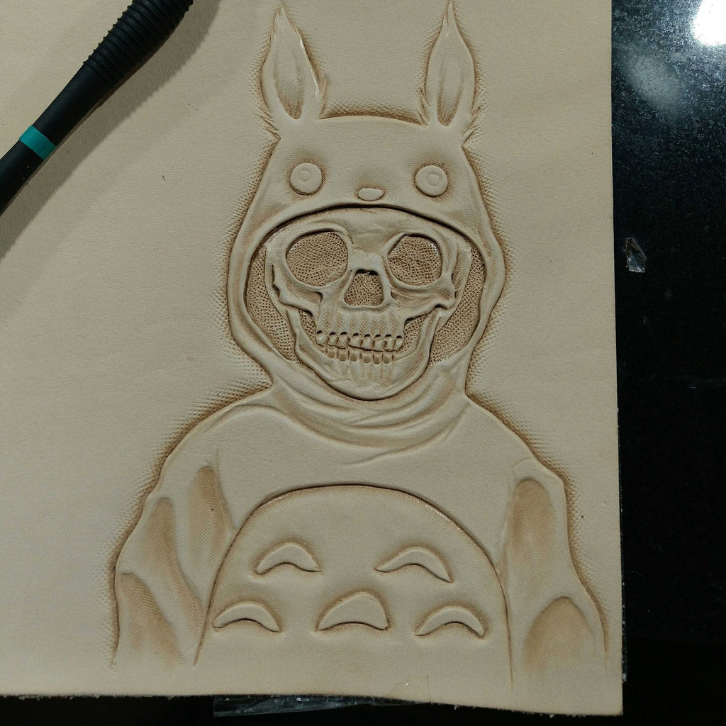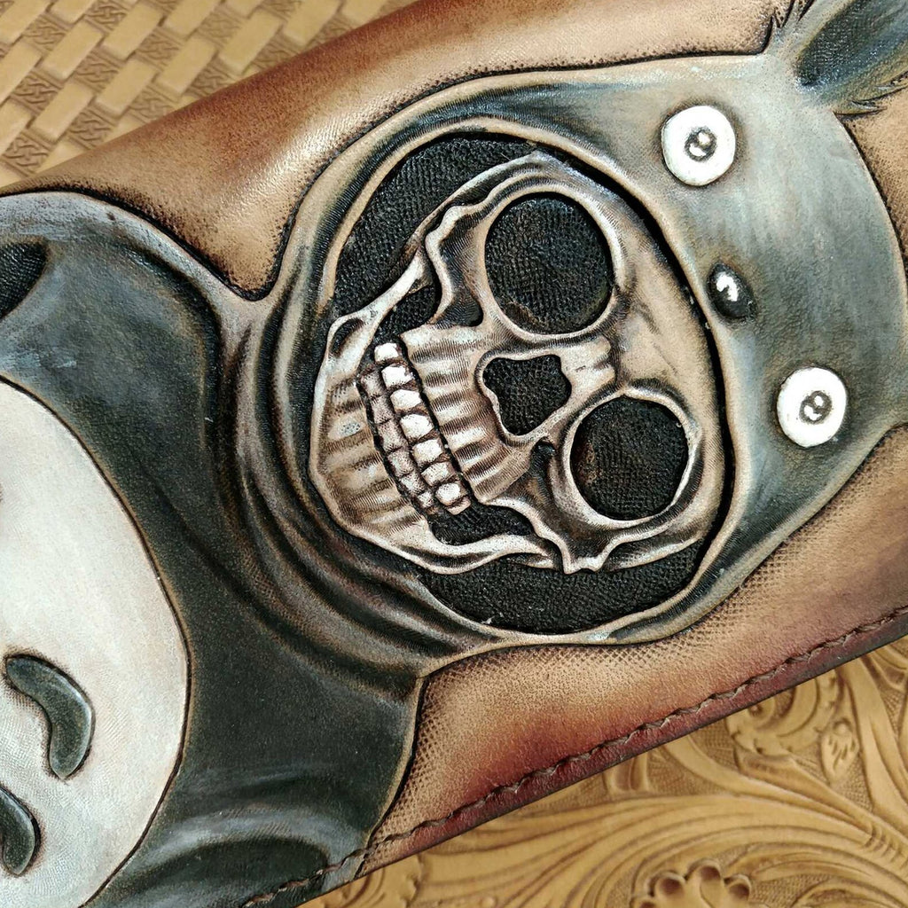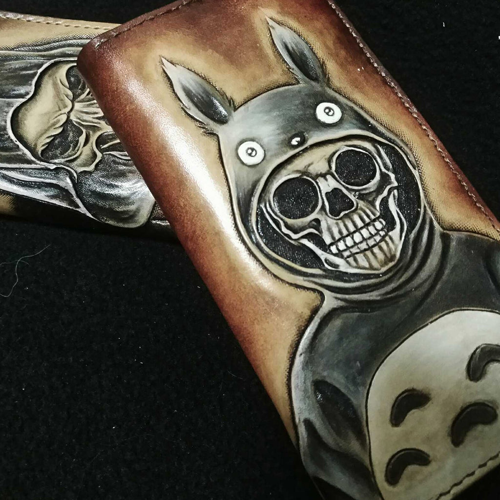 Design: Handmade Leather Skull Totoro Tooled Mens Long Wallet Cool Leather Wallet Clutch Wallet for Men