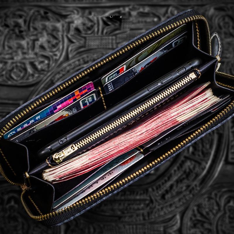 Slots: 2 full size bill slot, 8 card holders, 1 zipper slot