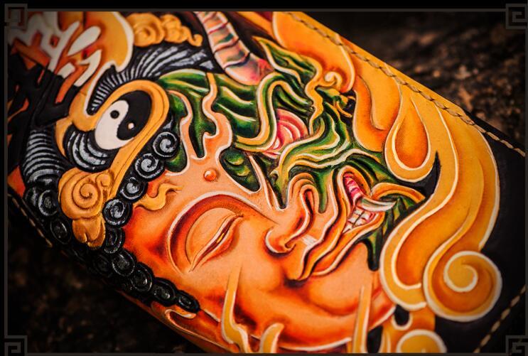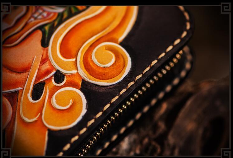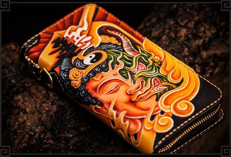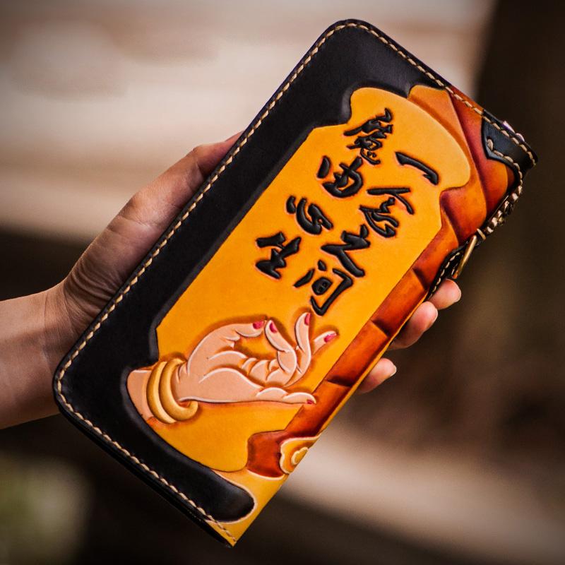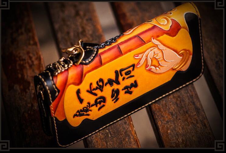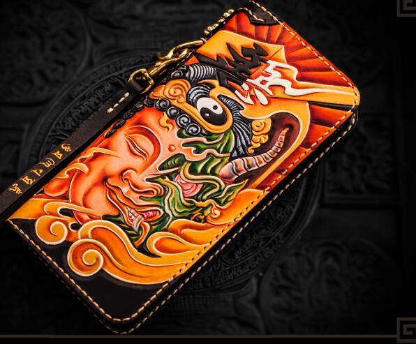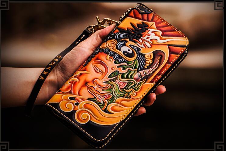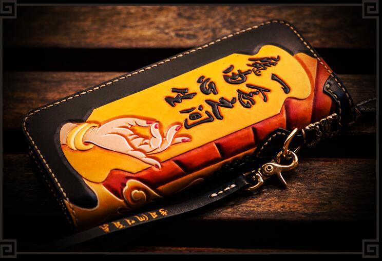Design: Handmade Leather Tooled At Whim Mens Chain Biker Wallet Cool Leather Wallet Long Phone Wallets for Men