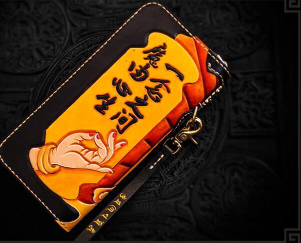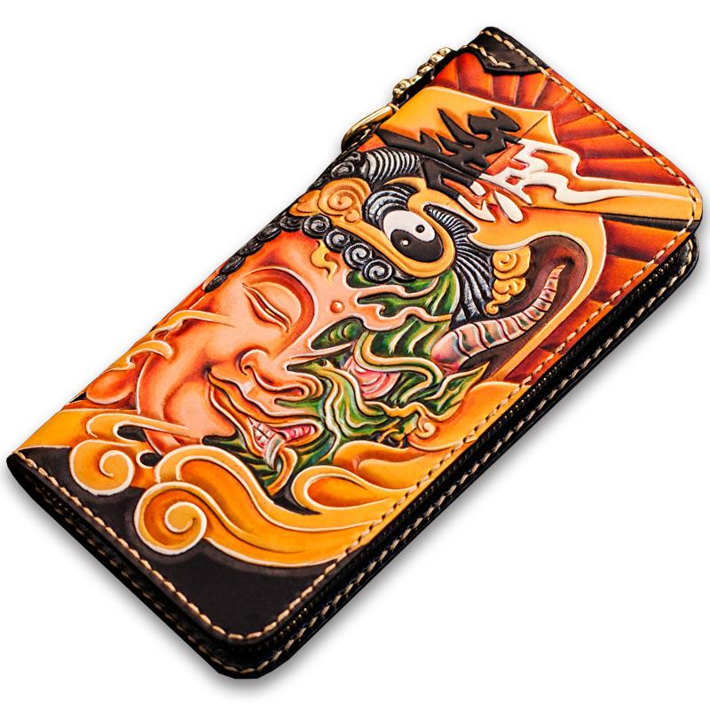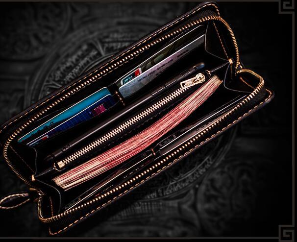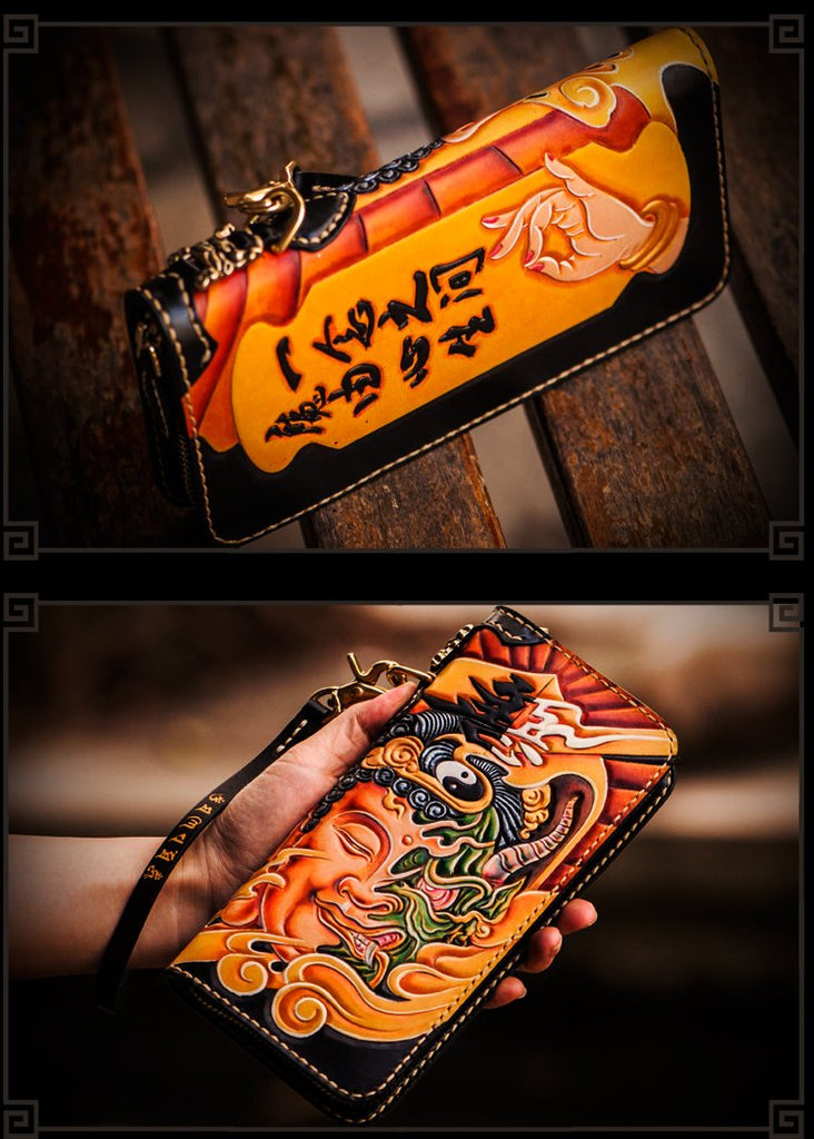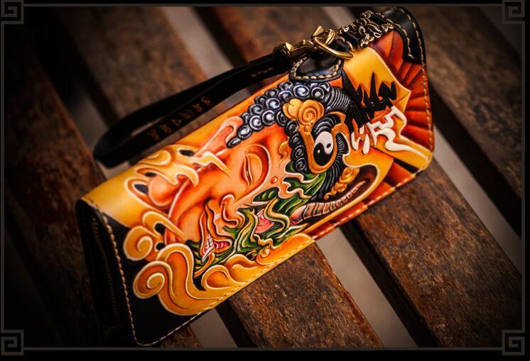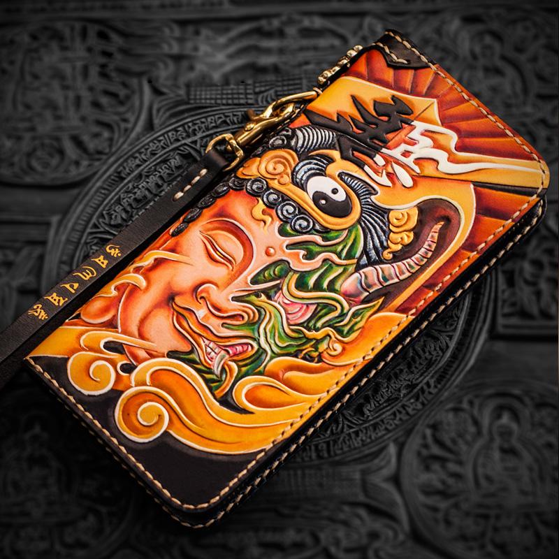 Design: Handmade Leather Tooled At Whim Mens Chain Biker Wallet Cool Leather Wallet Long Phone Wallets for Men