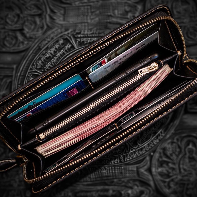 Slots: 2 full size bill slot, 8 card holders, 1 zipper slot, 2 phone slot